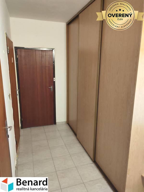 Základné údaje bytu: - osobné vlastníctvo, možnosť hypotekárneho úveru, - má 59 m2, výborná lokalita, - z väčšej časti pôvodný stav, vhodný na rekonštrukciu podľa predstáv nového majiteľa, - plastové okná, linoleum v obývacej izbe a spálni, keramická dlažba v chodbe, kuchyni, WC a v kúpeľni aj keramický obklad. - jadro murované, - kompletne vymenené zvislé rozvody, - nachádza sa na 7/7 poschodí, bez balkóna, - k bytu patrí pivnica cca 2 m2, - orientácia bytu je východ -západ, Bytový dom: - Sídlisko III, ul. M.Nešpora, dostatok parkovacích miest, - panelová konštrukcia zateplená, nový výťah, - spoločenstvo vlastníkov bytov, vlastná kotolňa, - komplet občianska vybavenosť, - internet, káblová TV, Byt je k dispozícii po dohode. ZADARMO K TEJTO NEHNUTEĽNOSTI DOSTANETE: Ø preverenie právneho stavu a tiarch danej nehnuteľnosti; Ø vysvetlenie problémov záložných tiarch, vecných bremien a pod.; Ø právny servis zabezpečený právnikom s dlhoročnými skúsenosťami; Ø kópiu LV prípadne katastrálnej mapy s kolkom na právne účely; Ø poplatky za overenie podpisov na zmluvách u notára; Ø správny poplatok za vklad vlastníckeho práva do katastra vo výške 100,-€ Ø realitné, daňové a právne poradenstvo; Ø zabezpečenie znalca na vypracovanie znaleckého posudku; Ø vypracovanie ponúk na zabezpečenie úveru u nášho hypotekárneho odborníka, ktorý spolupracuje so všetkými bankami, Ak máte záujem o obhliadku, prípadne potrebujete viac informácii, nájdete nás v realitnom centre na Slovenskej 8 v Prešove, alebo na mojzis@benard.sk, tel.č. 0905 831 732.