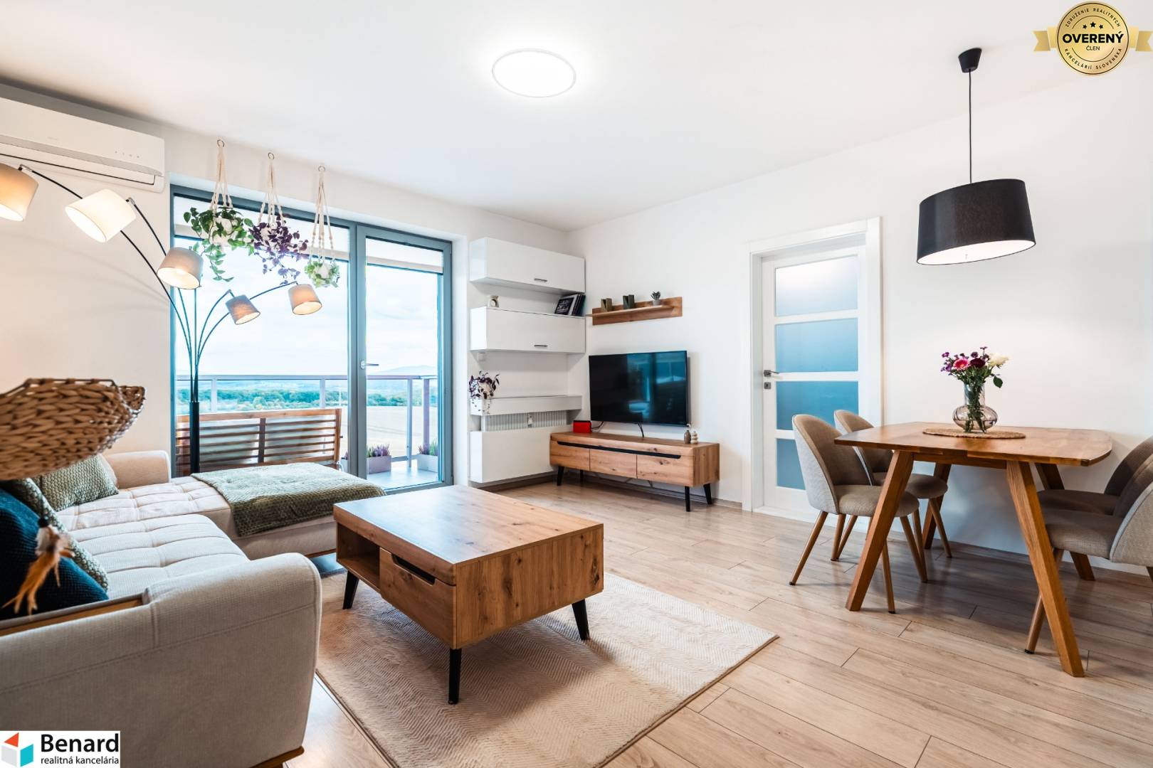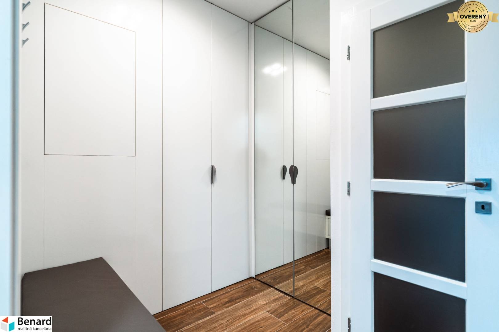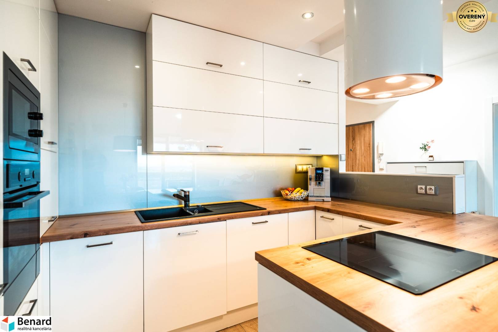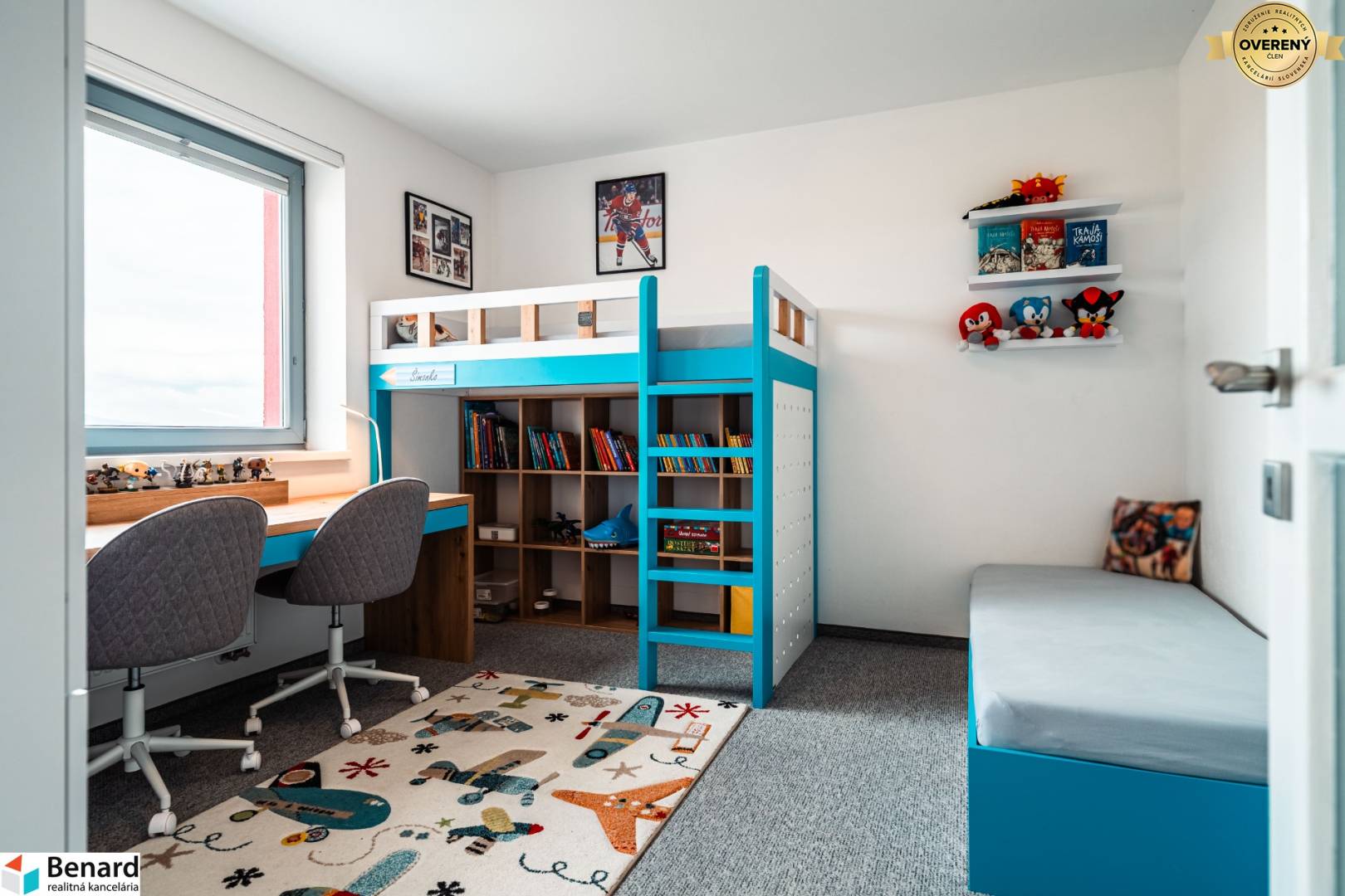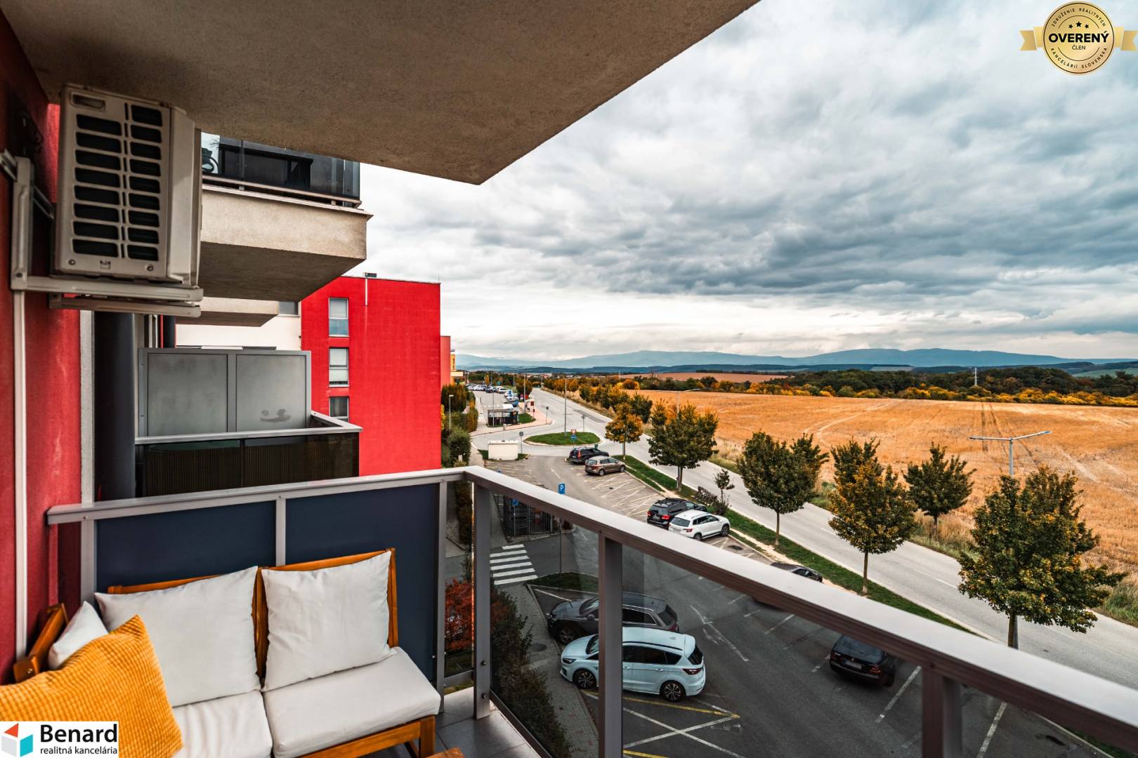 Hľadáte priestranný a moderný byt už v skolaudovanej novostavbe, ktorý je zariadený? Máme pre Vás na predaj 4-izbový byt s kumbálom, ktorý je oproti bytu, priamo na poschodí. Nehnuteľnosť sa nachádza na Jelšovej ulici, v obľúbenom projekte Panoráma. Ak si potrpíte na prostredie, v ktorom žijete a túžite po čerstvom vzduchu, či výhľade na lúky a lesy, tak Panoráma je pre vás ideálnou voľbou. Okolitá príroda a les ponúkajú pestré možnosti oddychu a rekreácie. Nájdete tu materskú školu, ohradený areál, kde sú detské ihriská, krásne a záhradníkom udržiavané pozemky, aj zastávku MHD. Rodičia určite ocenia, že za bytovými domami sa nachádza 250 metrov dlhý a oplotený dvor, kde sa môžu ich deti bezpečne hrať. Jednoducho všetko, čo potrebujete pre pohodlný, každodenný život. Táto lokalita je ideálnym miestom pre rodiny a pre komunitný život. Bytový dom je postavený z tehly a je zateplený prírodným materiálom, s 15-centimetrovou minerálnou vlnou. V bytovke sú štyri poschodia a predávaná nehnuteľnosť sa nachádza na 3. p. Byt je priestranný a má skvelé rozloženie. Spálňa, detská izba a pracovňa majú samostatné vstupy, sú nepriechodné. Kupujúci určite ocenia, že v byte sú dve toalety a dva samostatné balkóny, na ktoré sa dostanete z obývačky a zo spálne. Môžete si tak vychutnávať výhľady na okolitú prírodu. V dennej časti sa nachádza spojená obývačka s kuchyňou, kde je klimatizácia. V byte sú kvalitné okná s trojsklom. V bytovke sa nachádza plynová kotolňa, ktorá slúži na vykurovanie a ohrev úžitkovej vody, preto sú tu nízke mesačné náklady. Výhodou bytu je praktický kumbál, umiestnený oproti bytu, ktorý je zahrnutý v cene nehnuteľnosti. K bytu je možnosť dokúpiť parkovacie miesto priamo pri bytovom dome, ako aj pivnicu na prízemí bytového domu. Zakúpenie parkovacieho miesta ani pivnice nie je podmienkou kúpy. Cena parkovacieho miesta je 12 000 € a cena pivnice je 12 000 €. Výhody Vášho budúceho domova sú: - nízke mesačné náklady, - byt je priestranný, - byt má dva balkóny s krásnym výhľadom, - k dispozícii je kumbál, ktorý sa nachádza oproti bytu, - tiché bývanie s množstvom zelene, - možnosť zakúpiť si parkovacie miesto, ktoré je hneď pri bytovom dome, - možnosť zakúpiť si pivnicu, ktorá je na prízemí bytového domu, - celková plocha bytu je 102 m2 a plocha obytných miestností je 92,43 m2. Príďte sa o týchto, a aj iných výhodách presvedčiť sami a rezervujte si obhliadku na čísle 0903 367 922.