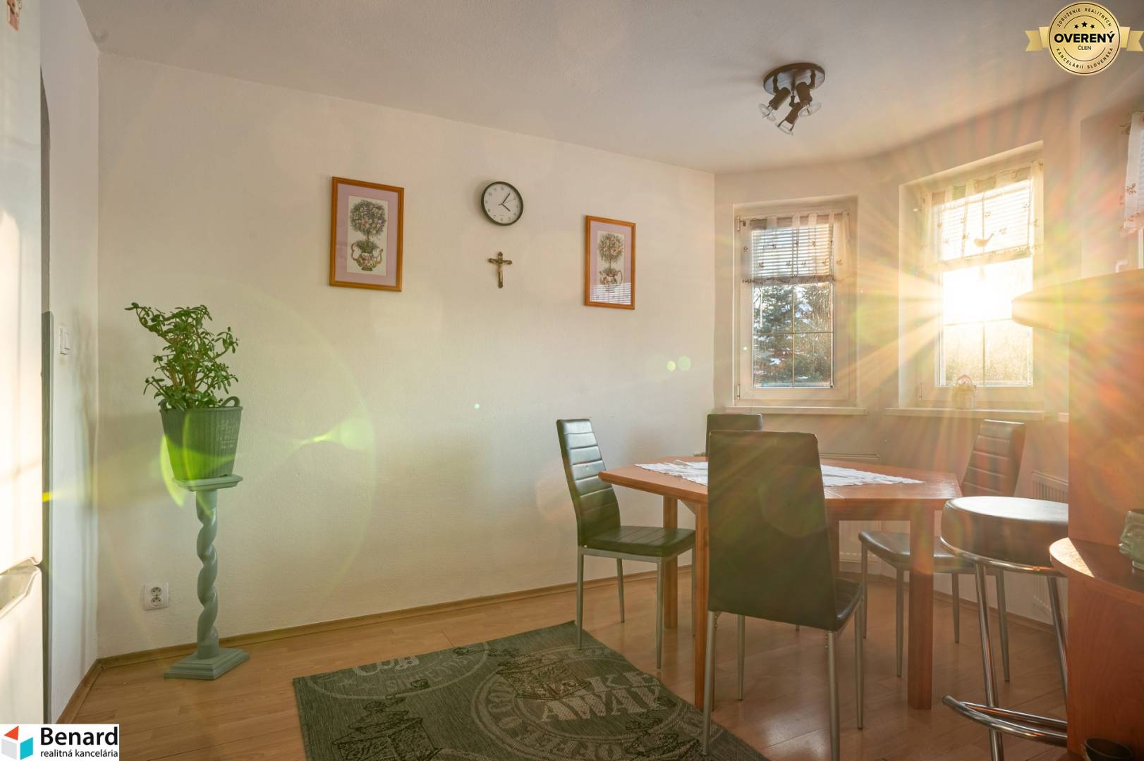 BENARD reality ponúka exkluzívne na predaj tento pekný a útulný 4-izbový rodinný dom v obci Svinia, len cca.5 min cesty autom od Prešova. Dom sa nachádza na začiatku dediny, mimo osady, má 4 izby, garáž a veľkorysú pivnicu s práčovňou. Na pozemku s výmerou 1.014 m2 sa nachádza rodinný dom s garážou, skolaudovaný v r. 2002. Dom je situovaný ďalej od cesty, prístup k domu je cez spoločný dvor člena rodiny a na danej parcele je k nemu zriadené právo prechodu a prejazdu. Parkovanie je možné pri dome . dispozícia: prízemie- vstupná chodba, kuchyňa, obývačka s výstupom na terasu, toaleta s umývadlom poschodie- 3 izby s výstupom na balkóny, kúpeľňa s vaňou a toaletou garáž, z ktorej sa dá prejsť do vstupnej chodby a zároveň do pivnice práčovňa ( nachádza sa v nej kúpeľňa s vaňou a sprchovacím kutom) špajza základné info: pozemok s rozlohou 1.014m2- pekný rovinatý s ovocnými krikmi zastavaná plocha domu 118m2, podlahová plocha 150m2 kolaudácia r. 2002- domček je zachovaný udržiavaný pani majiteľkou. IS- plyn, elektrina, kanalizácia, obecný vodovod+ kopaná studňa ( cca.8m) vykurovanie zabezpečené plynovým kotlom- radiátory postavené z Hebel- Ytongu, odizolovaný proti vlhkosti, poschodie železobetónová doska strecha - drevený krov, krytina asfaltový šindeľ Tegola, fasáda menená pred 10. rokmi veľká garáž ( cca. 20m2), pivnica so špajzou betónová terasa s výhľadom na záhradu bezproblémoví susedia Ak máte záujem o obhliadku prípadne potrebujete viac informácii nájdete nás v realitnom centre na Slovenskej ul. č. 8 v Prešove, prípadne na lukosikova@benard.sk alebo na telefónnom čísle 0907 632 405 ZADARMO K TEJTO NEHNUTEĽNOSTI DOSTANETE: ¬ inzerovanie nehnuteľnosti na najsledovanejších realitných portáloch a v miestnych novinách; ¬ preverenie právneho stavu a tiarch danej nehnuteľnosti; ¬ vysvetlenie problémov záložných tiarch, vecných bremien a pod.; ¬ právny servis zabezpečený právnikom s dlhoročnými skúsenosťami; ¬ kópiu LV prípadne katastrálnej mapy s kolkom na právne účely; ¬ poplatky za overenie podpisov na zmluvách u notára; ¬ správny poplatok za vklad vlastníckeho práva do katastra vo výške 100,-€ ¬ realitné, daňové a právne poradenstvo;