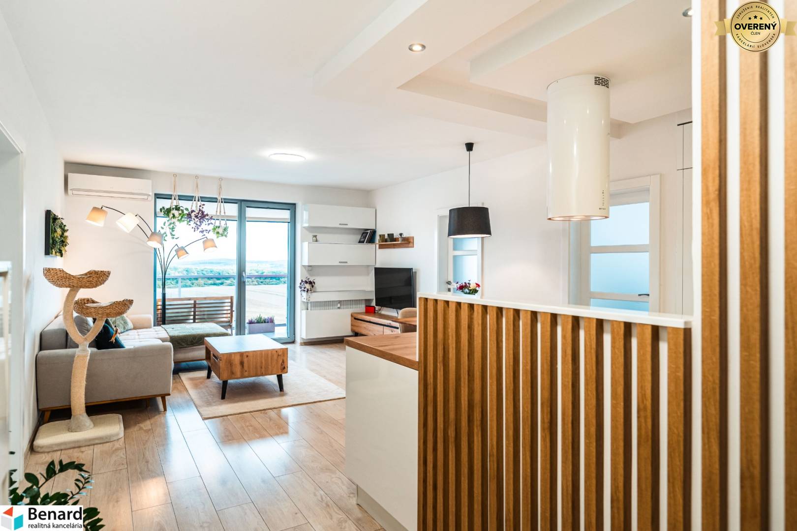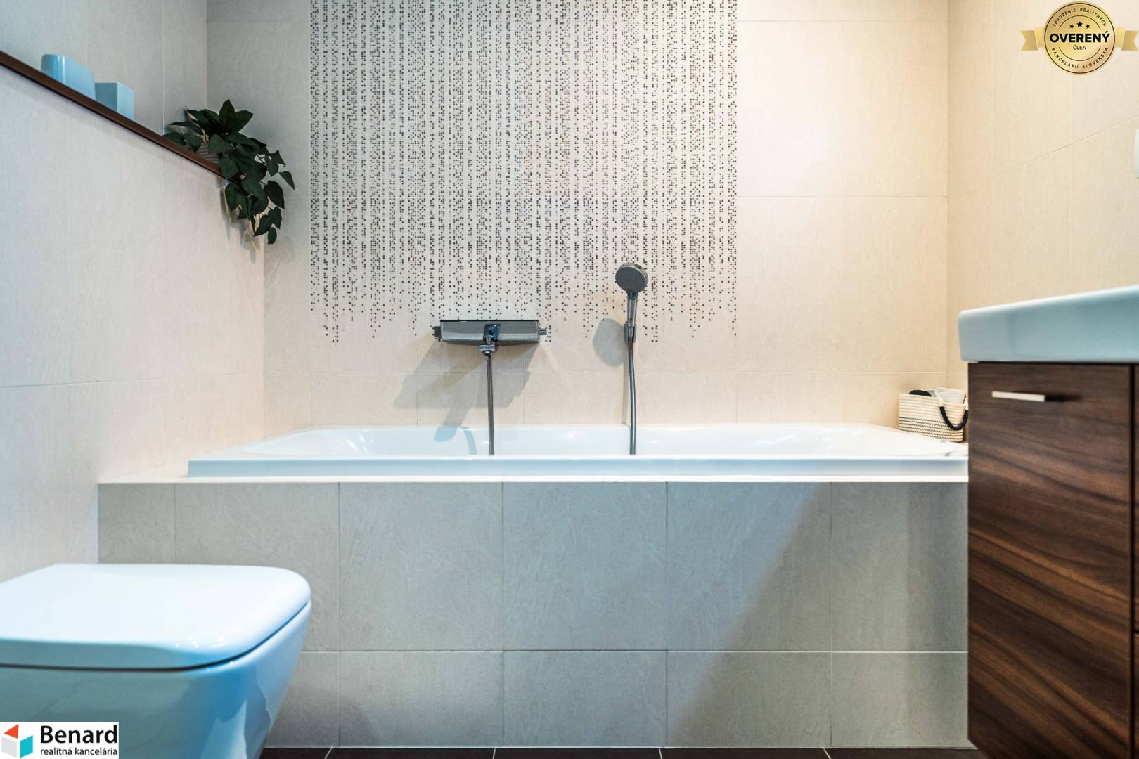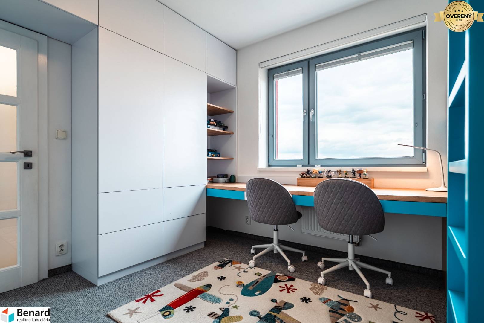 Hľadáte priestranný a moderný byt už v skolaudovanej novostavbe, ktorý je zariadený? Máme pre Vás na predaj 4-izbový byt s kumbálom, ktorý je oproti bytu, priamo na poschodí. Nehnuteľnosť sa nachádza na Jelšovej ulici, v obľúbenom projekte Panoráma. Ak si potrpíte na prostredie, v ktorom žijete a túžite po čerstvom vzduchu, či výhľade na lúky a lesy, tak Panoráma je pre vás ideálnou voľbou. Okolitá príroda a les ponúkajú pestré možnosti oddychu a rekreácie. Nájdete tu materskú školu, ohradený areál, kde sú detské ihriská, krásne a záhradníkom udržiavané pozemky, aj zastávku MHD. Rodičia určite ocenia, že za bytovými domami sa nachádza 250 metrov dlhý a oplotený dvor, kde sa môžu ich deti bezpečne hrať. Jednoducho všetko, čo potrebujete pre pohodlný, každodenný život. Táto lokalita je ideálnym miestom pre rodiny a pre komunitný život. Bytový dom je postavený z tehly a je zateplený prírodným materiálom, s 15-centimetrovou minerálnou vlnou. V bytovke sú štyri poschodia a predávaná nehnuteľnosť sa nachádza na 3. p. Byt je priestranný a má skvelé rozloženie. Spálňa, detská izba a pracovňa majú samostatné vstupy, sú nepriechodné. Kupujúci určite ocenia, že v byte sú dve toalety a dva samostatné balkóny, na ktoré sa dostanete z obývačky a zo spálne. Môžete si tak vychutnávať výhľady na okolitú prírodu. V dennej časti sa nachádza spojená obývačka s kuchyňou, kde je klimatizácia. V byte sú kvalitné okná s trojsklom. V bytovke sa nachádza plynová kotolňa, ktorá slúži na vykurovanie a ohrev úžitkovej vody, preto sú tu nízke mesačné náklady. Výhodou bytu je praktický kumbál, umiestnený oproti bytu, ktorý je zahrnutý v cene nehnuteľnosti. K bytu je možnosť dokúpiť parkovacie miesto priamo pri bytovom dome, ako aj pivnicu na prízemí bytového domu. Zakúpenie parkovacieho miesta ani pivnice nie je podmienkou kúpy. Cena parkovacieho miesta je 12 000 € a cena pivnice je 12 000 €. Výhody Vášho budúceho domova sú: - nízke mesačné náklady, - byt je priestranný, - byt má dva balkóny s krásnym výhľadom, - k dispozícii je kumbál, ktorý sa nachádza oproti bytu, - tiché bývanie s množstvom zelene, - možnosť zakúpiť si parkovacie miesto, ktoré je hneď pri bytovom dome, - možnosť zakúpiť si pivnicu, ktorá je na prízemí bytového domu, - celková plocha bytu je 102 m2 a plocha obytných miestností je 92,43 m2. Príďte sa o týchto, a aj iných výhodách presvedčiť sami a rezervujte si obhliadku na čísle 0903 367 922.