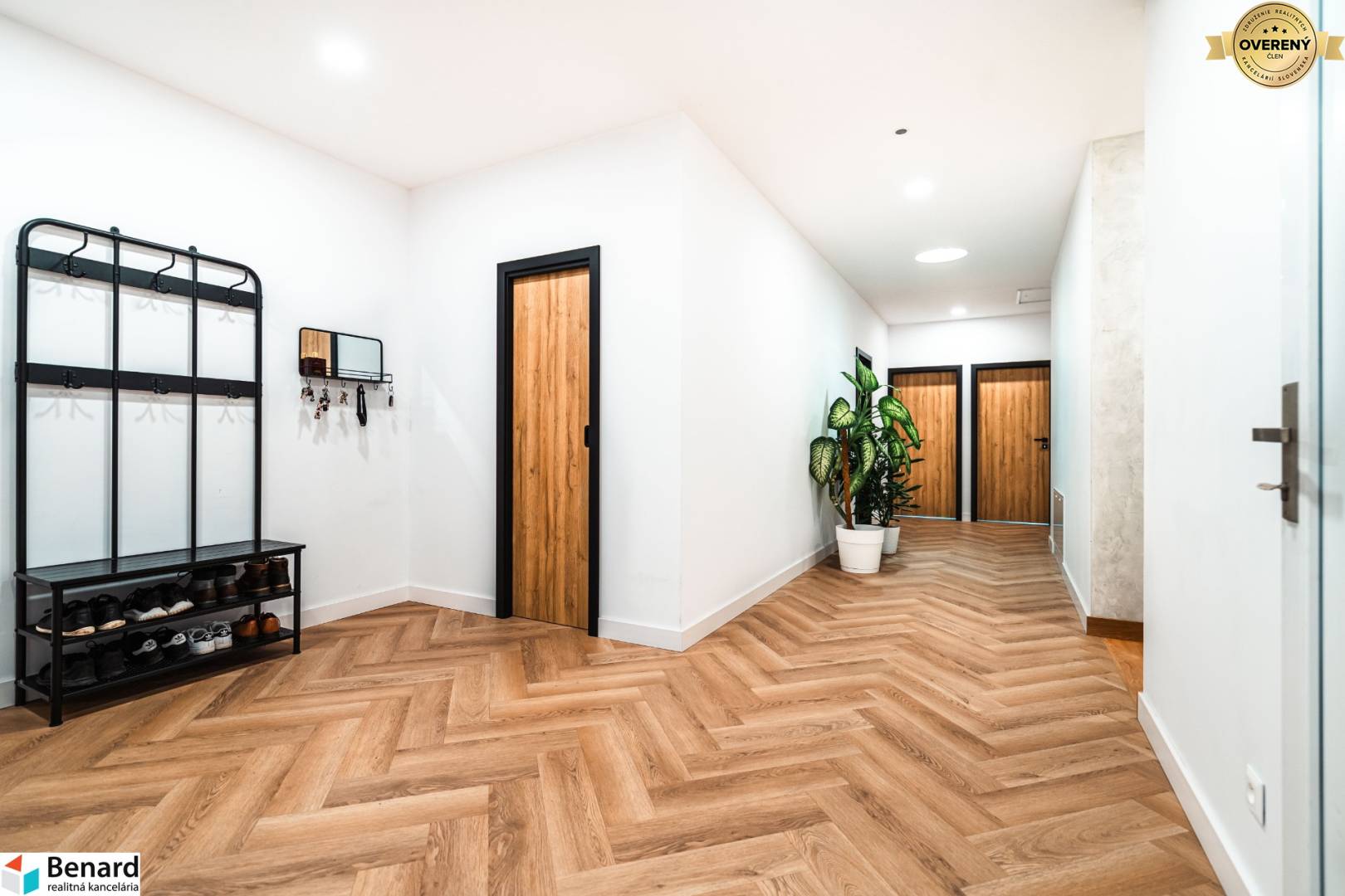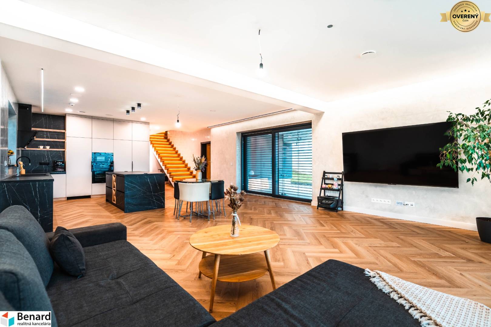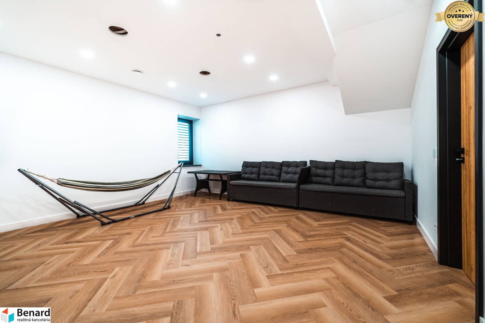 Hľadáte moderný a elegantný domov s nádherným výhľadom na Tatry? Predstavujeme vám jedinečnú novostavbu, dvojpodlažný rodinný dom v lukratívnej lokalite Stará Ľubovňa – Šibeničná hora. Na prvom podlaží vás privíta priestranná obývacia izba prepojená s jedálňou a kuchyňou so špajzou, ktorá je stvorená pre spoločné chvíle s rodinou. Špajza je vetrateľná, nakoľko má okno. V kuchyni boli použité spotrebiče značky Gorenje a nachádza sa tu filter pre úpravu vody. Nechýba pracovňa, miestnosť určená na šport či oddych, predpríprava pre saunu s vlastnou kúpeľňou, technická miestnosť, ktorá je vybavená aj práčovňou a sprchovým kútom, toaleta, pivnica a praktické sklady. Druhé podlažie ponúka hlavnú spálňu s priestranným šatníkom a panoramatickým výhľadom na majestátne Tatry, dve izby so spoločným šatníkom na chodbe, ktoré vytvárajú útulné zázemie pre deti či hostí. Nájdete tu tiež krásnu kúpeľňu, toaletu a predsieň s ďalším šatníkom. Celý dom je napojený na inteligentný systém Loxone, ktorý robí z bývania skutočný zážitok. Tento systém je mozgom domácnosti. Automaticky riadi osvetlenie, tienenie, kúrenie, rekuperáciu, multimédiá aj zabezpečenie. Vďaka tomu dom šetrí energiu tým, že zosúladí kúrenie, žalúzie a osvetlenie, vytvára ideálnu atmosféru v každom čase bez nutnosti manuálneho nastavovania, zvyšuje bezpečnosť, lebo upozorní na únik vody či otvorené okná pri daždi. Jednoducho, tento dom prináša pohodlie. Ovládanie domu je možné cez telefón alebo tablet, no väčšinu úloh systém zvládne sám – od automatického zhasnutia svetiel až po prispôsobenie teploty. V izbách sú senzory pohybu, ktoré reagujú na vaše potreby a na strope je predpríprava na reproduktory, vďaka ktorým si môžete vychutnávať hudbu či podcasty v každej miestnosti. Dom má podlahové vykurovanie, je napojený na plyn, elektrinu, obecnú vodu, kanalizáciu a disponuje aj vlastnou studňou. Viete si tak kombinovať využívanie obecnej vody a vody zo studne. Nechýba predpríprava na fotovoltiku, klimatizáciu, krb a tepelné čerpadlo. Okná sú trojkomorové s inteligentnými žalúziami, ktoré sa automaticky prispôsobujú – napríklad sa samy vytiahnu pri otvorení dverí na terasu alebo reagujú na dážď. Niektoré vypínače majú zabudovaný CO2 senzor. Úložný priestor dopĺňa pochôdzna povala rozprestierajúca sa po celej dĺžke domu. Súčasťou domu je komfortná garáž, ktorá poskytuje pohodlný vstup priamo do predsiene a zároveň chráni vaše vozidlá pred akýmkoľvek počasím. Je tu tiež predpríprava pre dobíjanie elektrického auta a do garáže môžete zaparkovať až dve vozidlá. Rodinný dom bol postavený v roku 2023 a je postavený z tehál Porotherm, čo zaručuje kvalitnú a pevnú konštrukciu s výbornými tepelnoizolačnými vlastnosťami. Zastavaná plocha prvého podlažie je 212,53 m² a úžitková plocha je 138,9 m². Zastavaná plocha druhého podlažia je 186,53 m² a úžitková plocha je 145,54 m². Dom disponuje terasou, ktorá je krytá a má 36,52 m². Pozemok má 642 m². Cena nehnuteľnosti je na vyžiadanie v realitnej kancelárii. Viac informácií vám radi poskytneme pri osobnej obhliadke alebo prostredníctvom telefonickej či e-mailovej komunikácie.