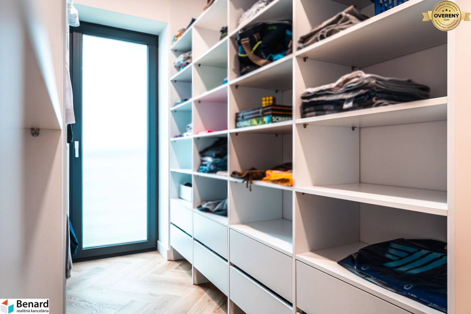 Na prvom podlaží vás privíta priestranná obývacia izba prepojená s jedálňou a kuchyňou so špajzou, ktorá je stvorená pre spoločné chvíle s rodinou. Špajza je vetrateľná, nakoľko má okno. V kuchyni boli použité spotrebiče značky Gorenje a nachádza sa tu filter pre úpravu vody. Nechýba pracovňa, miestnosť určená na šport či oddych, predpríprava pre saunu s vlastnou kúpeľňou, technická miestnosť, ktorá je vybavená aj práčovňou a sprchovým kútom, toaleta, pivnica a praktické sklady. Druhé podlažie ponúka hlavnú spálňu s priestranným šatníkom a panoramatickým výhľadom na majestátne Tatry, dve izby so spoločným šatníkom na chodbe, ktoré vytvárajú útulné zázemie pre deti či hostí. Nájdete tu tiež krásnu kúpeľňu, toaletu a predsieň s ďalším šatníkom.