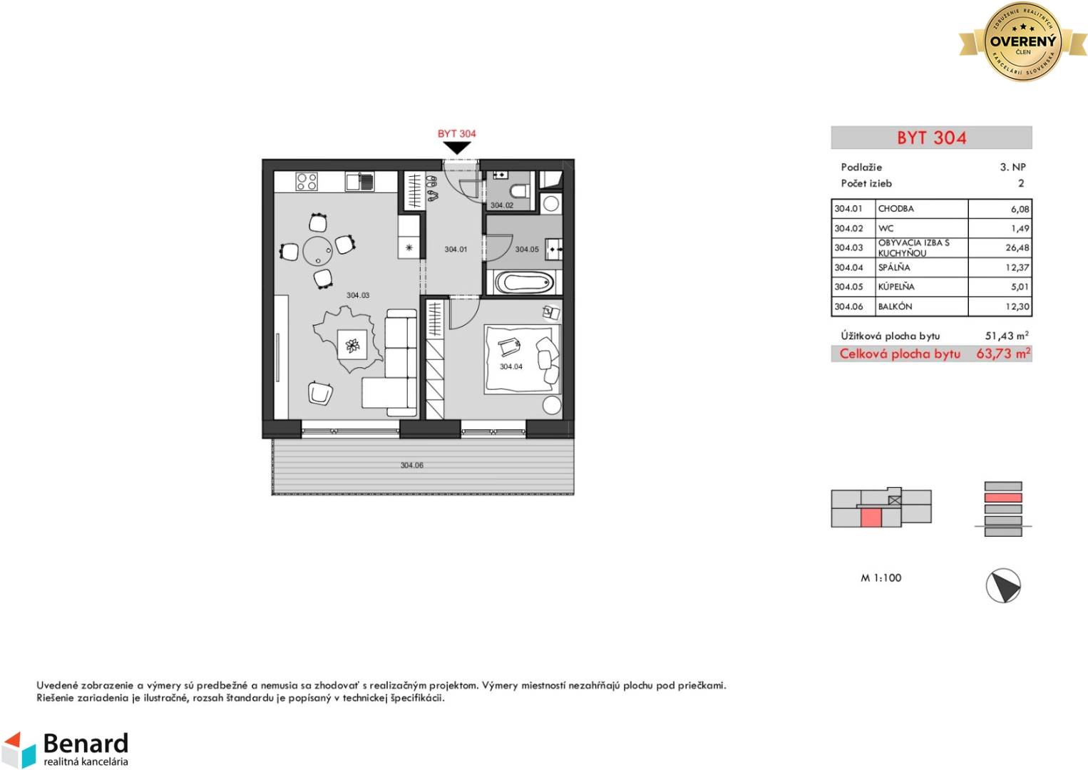 BD – RELAX; 2 IZBOVÝ BYT; 3.NP; 63,73m2;