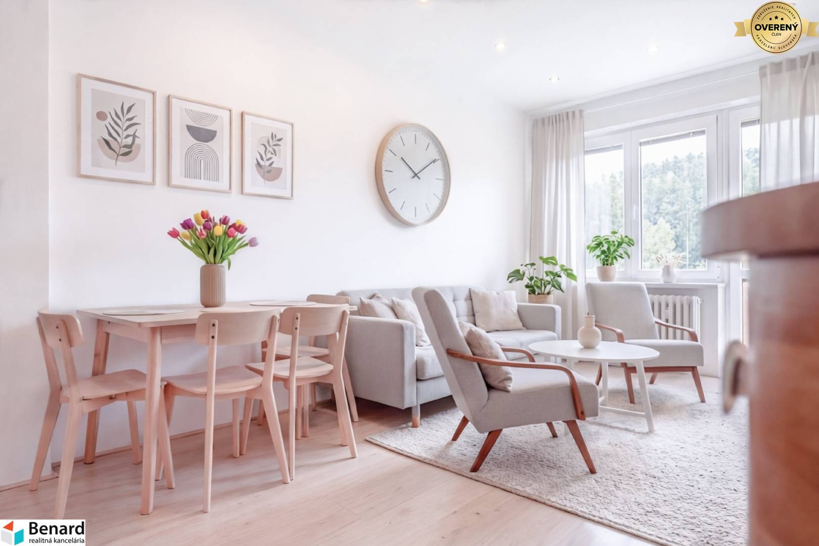 Hľadáte byt, ktorý si môžete prerobiť presne podľa vlastných predstáv a zároveň bývať v lokalite s výbornou polohou? Máme pre Vás na predaj 2-izbový byt na Štefánikovej ulici vo Svite, ktorý ponúka skvelý potenciál na bývanie aj investíciu. Mesto Svit je obľúbené najmä vďaka svojej výbornej polohe pod Tatrami, kompletnej občianskej vybavenosti a pokojnej atmosfére. Nájdete tu školy, škôlky, obchody, zdravotné stredisko, centrum voľného času, aj množstvo zelene. Lokalita je ideálna pre tých, ktorí chcú mať všetko poruke a zároveň si užívať blízkosť prírody. Veľkou výhodou je aj to, že ponuka bytov na predaj v tejto lokalite je obmedzená, čo z tejto nehnuteľnosti robí zaujímavú príležitosť aj z investičného hľadiska. Byt sa nachádza na 5. poschodí zo 6 v bytovom dome a ponúka pekné výhľady, ktoré si zamilujete. Disponuje francúzskym balkónom, ktorý príjemne presvetľuje interiér a dodáva bytu vzdušnosť. Veľkým benefitom je aj orientácia bytu mimo hlavnej cesty, vďaka čomu si užijete pokojné a tiché bývanie. Dispozícia bytu je praktická a dobre riešená. Celková úžitková plocha je 51,16 m². Nehnuteľnosť je v pôvodnom stave, čo predstavuje ideálnu príležitosť pre nového majiteľa prispôsobiť si bývanie podľa vlastného vkusu bez kompromisov. Výhodou je, že byt už má plastové okná a murované jadro, ktoré bolo rekonštruované približne pred 10 rokmi. K dispozícii je aj pivnica a v bytovom dome je výťah. Zaujímavosťou je aj možnosť dokúpenia garáže, ktorá sa nachádza priamo oproti bytovému domu. Nie je podmienkou kúpy, no nový majiteľ určite ocení komfort parkovania a zároveň praktický benefit – garáž má priamo „pod dohľadom“ z okna bytu. Cena garáže je 20.000 eur. Výhody Vášho budúceho domova: - výborná lokalita vo Svite, - krásne výhľady, - možnosť rekonštrukcie podľa vlastných predstáv, - ideálny aj ako investičná nehnuteľnosť, - dobrá dispozícia bytu, - garáž oproti bytovému domu, - pred kúpou tejto nehnuteľnosti získate od nás informácie o najvhodnejšom hypotekárnom úvere priamo pre Vás. Aby ste si vedeli lepšie predstaviť potenciál tohto bytu, v inzercii nájdete okrem fotografií aktuálneho stavu aj vizualizácie možného budúceho riešenia. Cena nehnuteľnosti je dostupná na vyžiadanie v realitnej kancelárii. Viac informácií vám radi poskytneme pri osobnej obhliadke alebo prostredníctvom telefonickej či e-mailovej komunikácie.