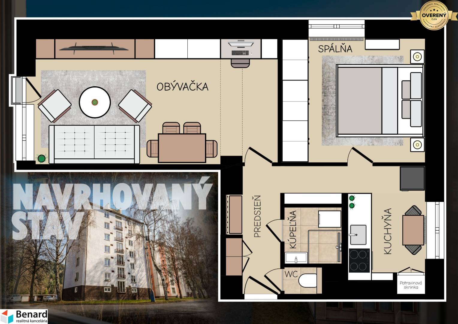 Aby ste si vedeli lepšie predstaviť potenciál tohto bytu, v inzercii nájdete okrem fotografií aktuálneho stavu aj vizualizácie možného budúceho riešenia.
