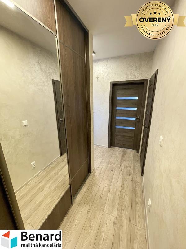 BENARD REALITY Vám ponúka na predaj tento lukratívny a krásny, kompletne zariadený 2 izbový byt, ktorý sa nachádza v bezbariérovom bytovom dome v obľúbenej lokalite Košice-Vyšné Opátske, na ul. Borievková. Z klimatizovanej obývacej izby spojenou s kuchyňou, a spálne sa vystupuje na priestrannú lodžiu, ktorá ponúka maximálne súkromie a krásny výhľad. K bytu patrí aj vlastné vonkajšie parkovacie miesto. Mesačné náklady spojené s užívaním bytu sú cca 110€. V byte je namontovaná klimatizácia a taktiež vonkajšie žalúzie s ovládaním. Byt pozostáva : vstupná chodba, obývacia miestnosť spojená s kuchyňou, spálňa, lodžia, kúpeľňa a samostatné WC. - 48 m2 , 3/5 posch., - bezpečnostné vchodové dvere, video-vrátnik, - podlahové vykurovanie, - byt v osobnom vlastníctve – možnosť financovania hypotékou( pomôžeme Vám s jej vybavením) - keramická dlažba a obklad ( kúpeľňa a WC) - kuchynská linka so vstavanými spotrebičmi - vstavané skriňa na chodbe, veľká šatníková skriňa v spálni - lodžia - k bytu patrí aj vlastné parkovacie miesto Byt sa predáva kompletne zariadený.... "Ak máte záujem o obhliadku prípadne potrebujete viac informácii nájdete nás v realitnom centre na Slovenskej ul. č. 8 v Prešove, prípadne na zakutansky@benard.sk alebo na telefónnom čísle 0908 077 713" ZADARMO K TEJTO NEHNUTEĽNOSTI DOSTANETE: inzerovanie nehnuteľnosti na najsledovanejších realitných portáloch a v miestnych novinách; preverenie právneho stavu a tiarch danej nehnuteľnosti; vysvetlenie problémov záložných tiarch, vecných bremien a pod.; právny servis zabezpečený právnikom s dlhoročnými skúsenosťami; kópiu LV prípadne katastrálnej mapy s kolkom na právne účely; poplatky za overenie podpisov na zmluvách u notára; správny poplatok za vklad vlastníckeho práva do katastra vo výške 100,-€ realitné, daňové a právne poradenstvo; zabezpečenie znalca na vypracovania znaleckého posudku; vypracovanie ponúk na zabezpečenie úveru u nášho hypotekárneho odborníka, ktorý spolupracuje s viacerými bankami;