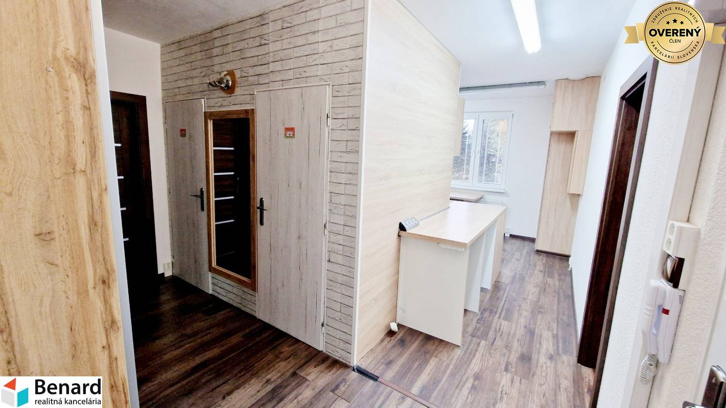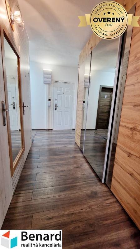 TOP CENA!. Na predaj pekný, rekonštruovaný 4 izbový byt s vlastným elektrickým kúrením a klimatizáciou, ulica Magurská, Sekčov, Prešov. Pozostáva : chodba, kuchyňa, izba, izba, obývacia izba, spálňa, kúpeľňa, wc, lodžia. - 77 m2 , 1/8 poschodie - lodžia - osobné vlastníctvo - byt prešiel rekonštrukciou v roku 2021 - kuchynská linka: plynový sporák, digestor, pripravený priestor na rúru, práčku a sušičku, potravinová skrinka, kuchynský rozťahovací stôl - vymenené zárubne a interiérové dvere - vchodové bezpečnostné dvere - vymenené radiátory v celom byte, jedna izba pôvodný rebrový radiátor - zateplená podlaha polystyrén, OSB doska, na nej plávajúca podlaha - keramická dlažba : lodžia - plávajúca podlaha : v celom byte - keramický obklad : kúpeľňa, wc - znížený strop: kúpeľňa - vymenené stúpačky - vymenená : elektrina aj 380, denný a nočný prúd - vlastné elektrické kúrenie a vlastný ohrev teplej vody 120 l zásobník vody - klimatizácia - kúpeľňa: kúpeľňový nábytok, vaňa - jadro: cembritová doska - plastové okná, žalúzie - vstavaná skriňa : chodba, spálňa - v celom byte lustre - pivnica malá, spoločná - pred bytom veľká vstupná chodba v nej veľký úložný priestor - nové vchodové dvere a zvončeky, dlažba, plastové okná, nová fasáda - výťah - parkovanie pred bytovým domom bezplatné Výhoda bytu: vynikajúca občianska vybavenosť, školy škôlka, ihriská, v blízkosti nákupné centrum NC MAX, zdravotné stredisko, kostol, MHD v blízkosti Ak máte záujem o obhliadku, prípadne potrebujete viac informácii, nájdete nás v realitnom centre na Slovenskej ulici č. 8 v Prešove, alebo na olejarova@benard.sk, tel.č: 0908 111 710 ZADARMO K TEJTO NEHNUTEĽNOSTI DOSTANETE: inzerovanie nehnuteľnosti na najsledovanejších realitných portáloch a v miestnych novinách; preverenie právneho stavu a tiarch danej nehnuteľnosti; vysvetlenie problémov záložných tiarch, vecných bremien a pod., právny servis zabezpečený právnikom s dlhoročnými skúsenosťami; kópiu LV prípadne katastrálnej mapy s kolkom na právne účely; poplatky za overenie podpisov na zmluvách u notára; správny poplatok za vklad vlastníckeho práva do katastra vo výške 100,-€ realitné, daňové a právne poradenstvo; zabezpečenie znalca na vypracovania znaleckého posudku; vypracovanie ponúk na zabezpečenie úveru u nášho hypotekárneho odborníka, ktorý spolupracuje s viacerými bankami