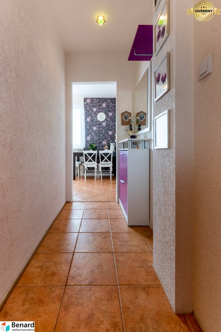 Byt je vo výbornej lokalite s kompletnou občianskou vybavenosťou a nádherným výhľadom na okolie ( nepozeráte susedovi do okna ). Hneď pri bytovom dome je ZŠ a pekný park, kde sa môžete prechádzať, alebo vyvenčiť Vášho ,, kámoša " ... :) Pro vážnom záujme je ešte možná dohoda na cene. - Rozloha bytu 69 M2 + loggia cca 6 m2 - Poschodie 6/7 - Plastové okná v celom byte so žalúziami a sieťkami proti hmyzu - Laminátové podlahy v izbách a v kuchyni - Keramická dlažba a obklady chodba, kúpeľňa, WC - Byt sa predáva s kompletným zariadením ako je na fotografiách - Kompletná rekonštrukcia bytu bola robená cca v roku 2012 - Pivnica v suteréne bytového domu cca 3 m2 BYTOVÝ DOM: - Zateplená fasáda - Vymenené stúpačky - Nová strecha - Bezpečnostné vchodové dvere - Nové schránky, domový vrátnik - Nový výťah - SPRÁVCA: SPRAVBYT PARKOVANIE: - Pri bytovom dome – spoločné pre vlastníkov bytového domu. OKOLIE: - Kompletná občianska vybavenosť MHD zastávka, ZŠ, MŠ, lekári, park pre deti a dospelých, potraviny. NÁZOR MAKLÉRA: - Byt je vo veľmi dobrom stave a pripravený k okamžitému nasťahovaniu. - Lokalita na bývanie je ideálna pre rodiny s deťmi aj bez nich. - Krásne a tiché prostredie a nádherný výhľad z loggie, kde si oddýchnete po dlhom dni po práci. Ak máte záujem o obhliadku, prípadne potrebujete viac informácii, kontaktujte nás na: kmecova@benard.sk, tel.č. 0948 140 849, alebo v realitnom centre na Slovenskej 8 v Prešove. ZADARMO K TEJTO NEHNUTEĽNOSTI DOSTANETE: Ø preverenie právneho stavu a tiarch danej nehnuteľnosti Ø vysvetlenie problémov záložných tiarch, vecných bremien a pod Ø právny servis zabezpečený právnikom s dlhoročnými skúsenosťami Ø kópiu LV prípadne katastrálnej mapy s kolkom na právne účely Ø poplatky za overenie podpisov na zmluvách u notára Ø správny poplatok za vklad vlastníckeho práva do katastra vo výške 100,-€ Ø realitné, daňové a právne poradenstvo Ø zabezpečenie znalca na vypracovanie znaleckého posudku Ø vypracovanie ponúk na zabezpečenie hypotéky u nášho odborníka, ktorý spolupracuje so všetkými bankami
