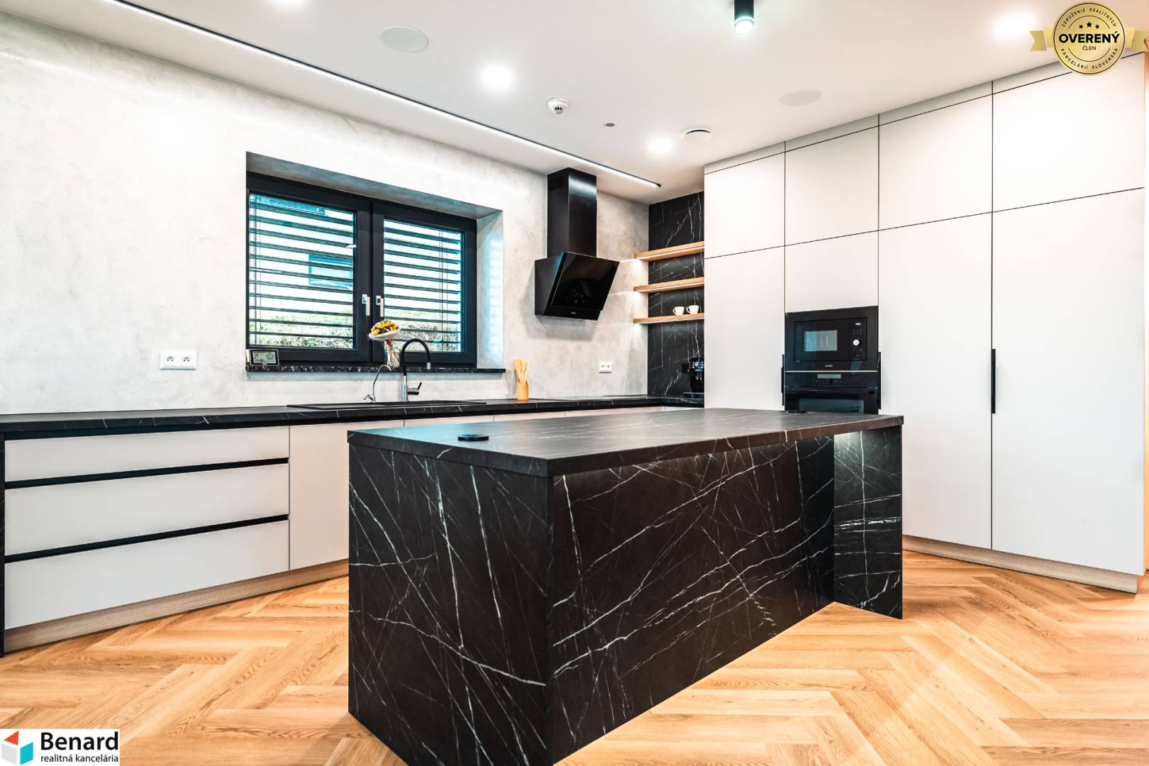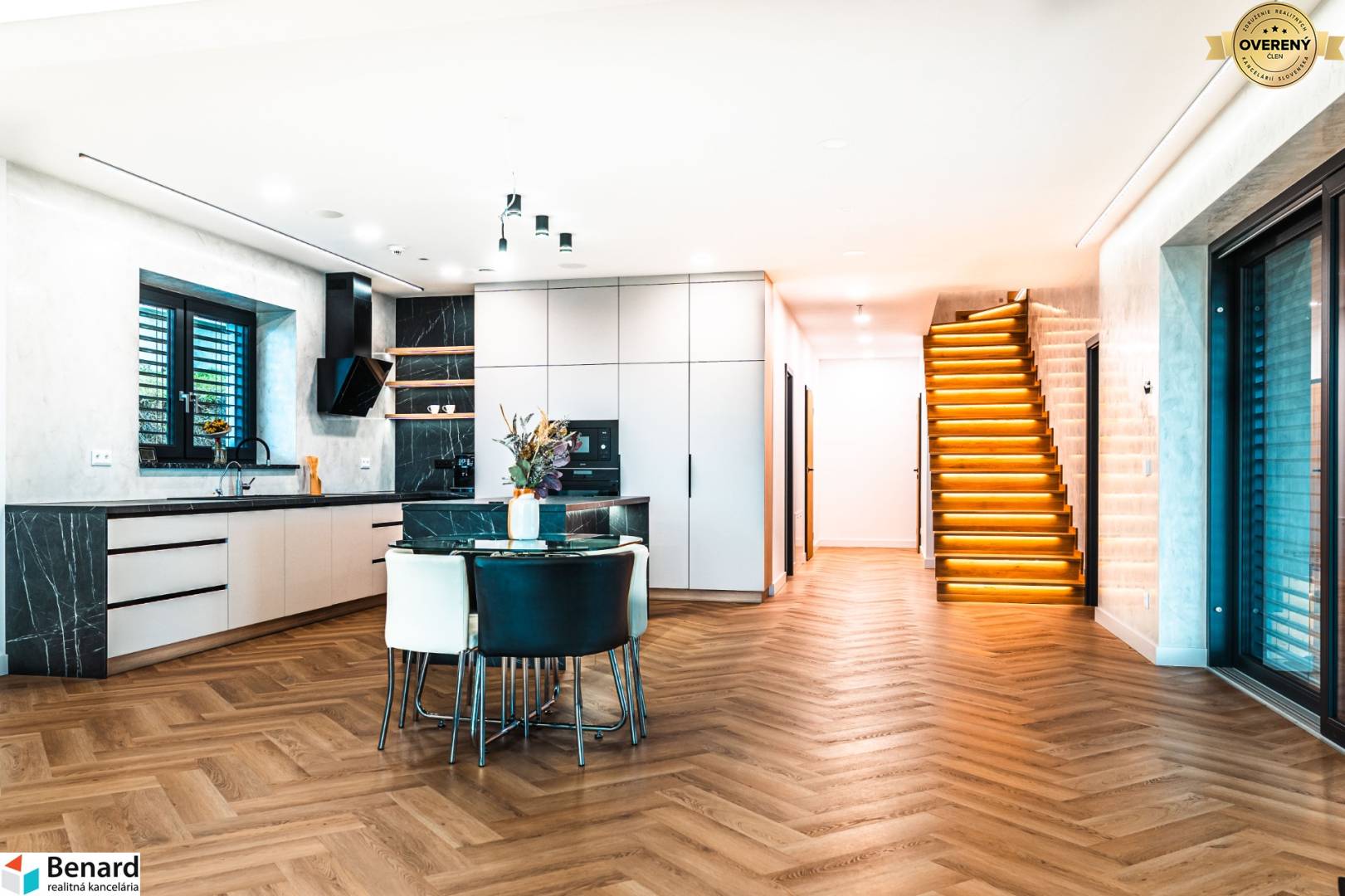 Hľadáte moderný a elegantný domov s nádherným výhľadom na Tatry? Predstavujeme vám jedinečnú novostavbu, dvojpodlažný rodinný dom v lukratívnej lokalite Stará Ľubovňa – Šibeničná hora. Na prvom podlaží vás privíta priestranná obývacia izba prepojená s jedálňou a kuchyňou so špajzou, ktorá je stvorená pre spoločné chvíle s rodinou. Špajza je vetrateľná, nakoľko má okno. V kuchyni boli použité spotrebiče značky Gorenje a nachádza sa tu filter pre úpravu vody. Nechýba pracovňa, miestnosť určená na šport či oddych, predpríprava pre saunu s vlastnou kúpeľňou, technická miestnosť, ktorá je vybavená aj práčovňou a sprchovým kútom, toaleta, pivnica a praktické sklady. Druhé podlažie ponúka hlavnú spálňu s priestranným šatníkom a panoramatickým výhľadom na majestátne Tatry, dve izby so spoločným šatníkom na chodbe, ktoré vytvárajú útulné zázemie pre deti či hostí. Nájdete tu tiež krásnu kúpeľňu, toaletu a predsieň s ďalším šatníkom. Celý dom je napojený na inteligentný systém Loxone, ktorý robí z bývania skutočný zážitok. Tento systém je mozgom domácnosti. Automaticky riadi osvetlenie, tienenie, kúrenie, rekuperáciu, multimédiá aj zabezpečenie. Vďaka tomu dom šetrí energiu tým, že zosúladí kúrenie, žalúzie a osvetlenie, vytvára ideálnu atmosféru v každom čase bez nutnosti manuálneho nastavovania, zvyšuje bezpečnosť, lebo upozorní na únik vody či otvorené okná pri daždi. Jednoducho, tento dom prináša pohodlie. Ovládanie domu je možné cez telefón alebo tablet, no väčšinu úloh systém zvládne sám – od automatického zhasnutia svetiel až po prispôsobenie teploty. V izbách sú senzory pohybu, ktoré reagujú na vaše potreby a na strope je predpríprava na reproduktory, vďaka ktorým si môžete vychutnávať hudbu či podcasty v každej miestnosti. Dom má podlahové vykurovanie, je napojený na plyn, elektrinu, obecnú vodu, kanalizáciu a disponuje aj vlastnou studňou. Viete si tak kombinovať využívanie obecnej vody a vody zo studne. Nechýba predpríprava na fotovoltiku, klimatizáciu, krb a tepelné čerpadlo. Okná sú trojkomorové s inteligentnými žalúziami, ktoré sa automaticky prispôsobujú – napríklad sa samy vytiahnu pri otvorení dverí na terasu alebo reagujú na dážď. Niektoré vypínače majú zabudovaný CO2 senzor. Úložný priestor dopĺňa pochôdzna povala rozprestierajúca sa po celej dĺžke domu. Súčasťou domu je komfortná garáž, ktorá poskytuje pohodlný vstup priamo do predsiene a zároveň chráni vaše vozidlá pred akýmkoľvek počasím. Je tu tiež predpríprava pre dobíjanie elektrického auta a do garáže môžete zaparkovať až dve vozidlá. Rodinný dom bol postavený v roku 2023 a je postavený z tehál Porotherm, čo zaručuje kvalitnú a pevnú konštrukciu s výbornými tepelnoizolačnými vlastnosťami. Zastavaná plocha prvého podlažie je 212,53 m² a úžitková plocha je 138,9 m². Zastavaná plocha druhého podlažia je 186,53 m² a úžitková plocha je 145,54 m². Dom disponuje terasou, ktorá je krytá a má 36,52 m². Pozemok má 642 m². Cena nehnuteľnosti je na vyžiadanie v realitnej kancelárii. Viac informácií vám radi poskytneme pri osobnej obhliadke alebo prostredníctvom telefonickej či e-mailovej komunikácie.