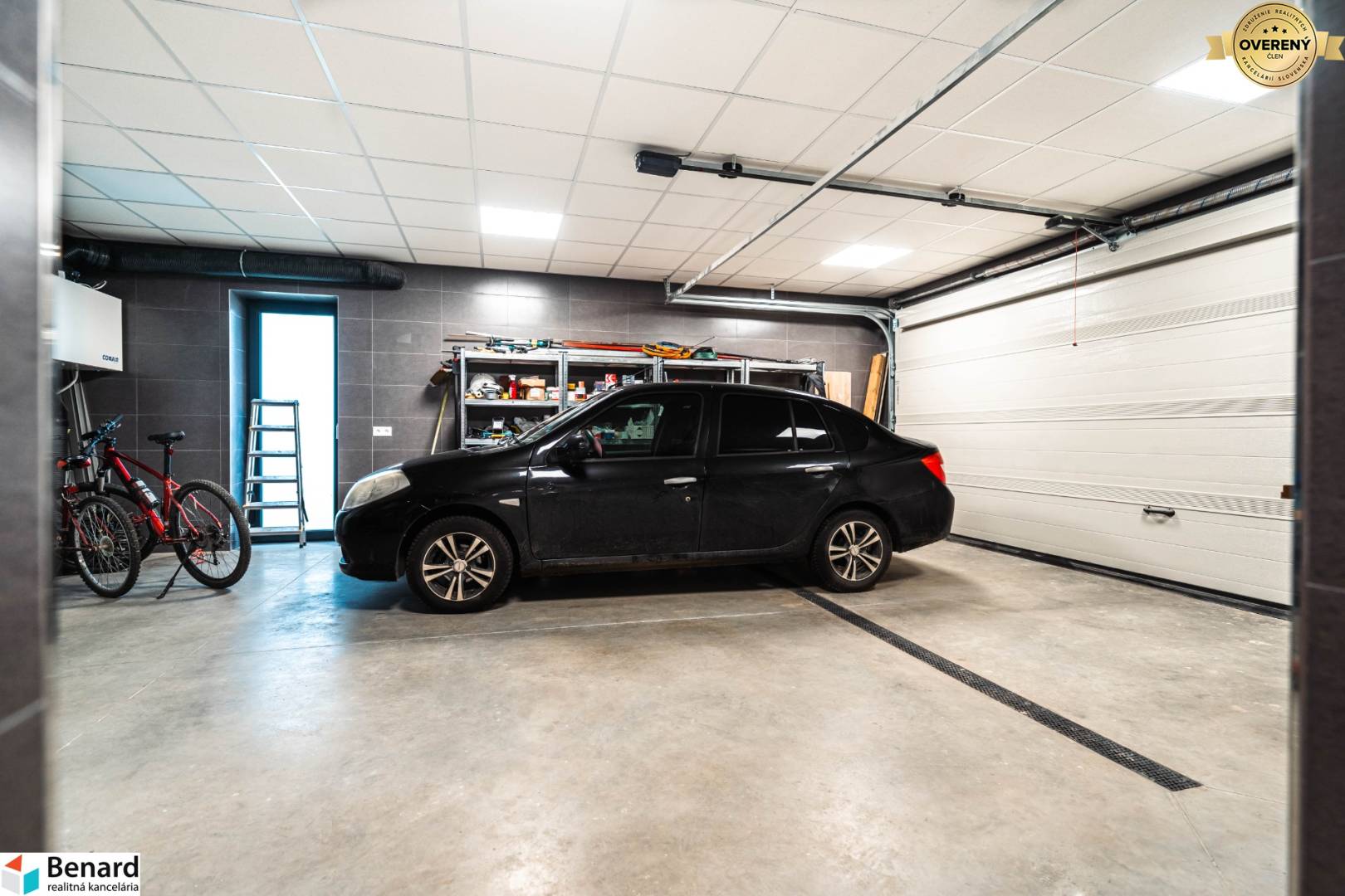 Súčasťou domu je komfortná garáž, ktorá poskytuje pohodlný vstup priamo do predsiene a zároveň chráni vaše vozidlá pred akýmkoľvek počasím. Je tu tiež predpríprava pre dobíjanie elektrického auta a do garáže môžete zaparkovať až dve vozidlá. Rodinný dom bol postavený v roku 2023 a je postavený z tehál Porotherm, čo zaručuje kvalitnú a pevnú konštrukciu s výbornými tepelnoizolačnými vlastnosťami. Zastavaná plocha prvého podlažie je 212,53 m² a úžitková plocha je 138,9 m². Zastavaná plocha druhého podlažia je 186,53 m² a úžitková plocha je 145,54 m². Dom disponuje terasou, ktorá je krytá a má 36,52 m². Pozemok má 642 m².