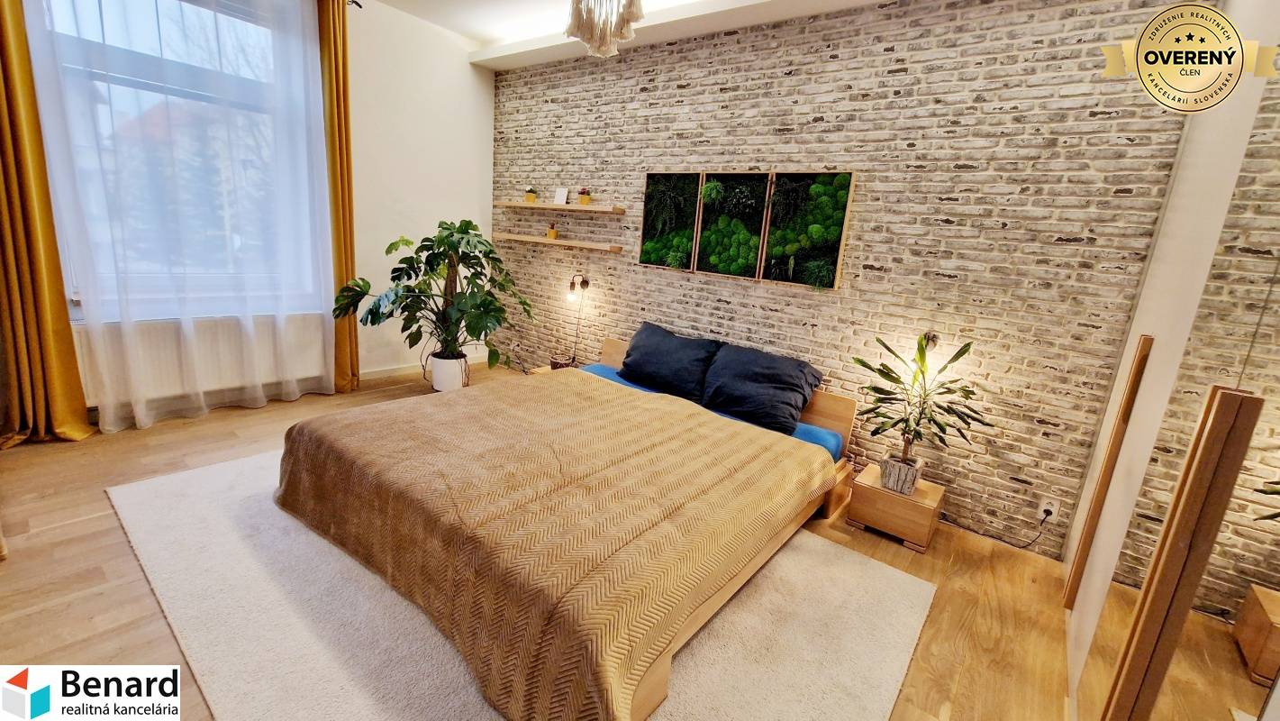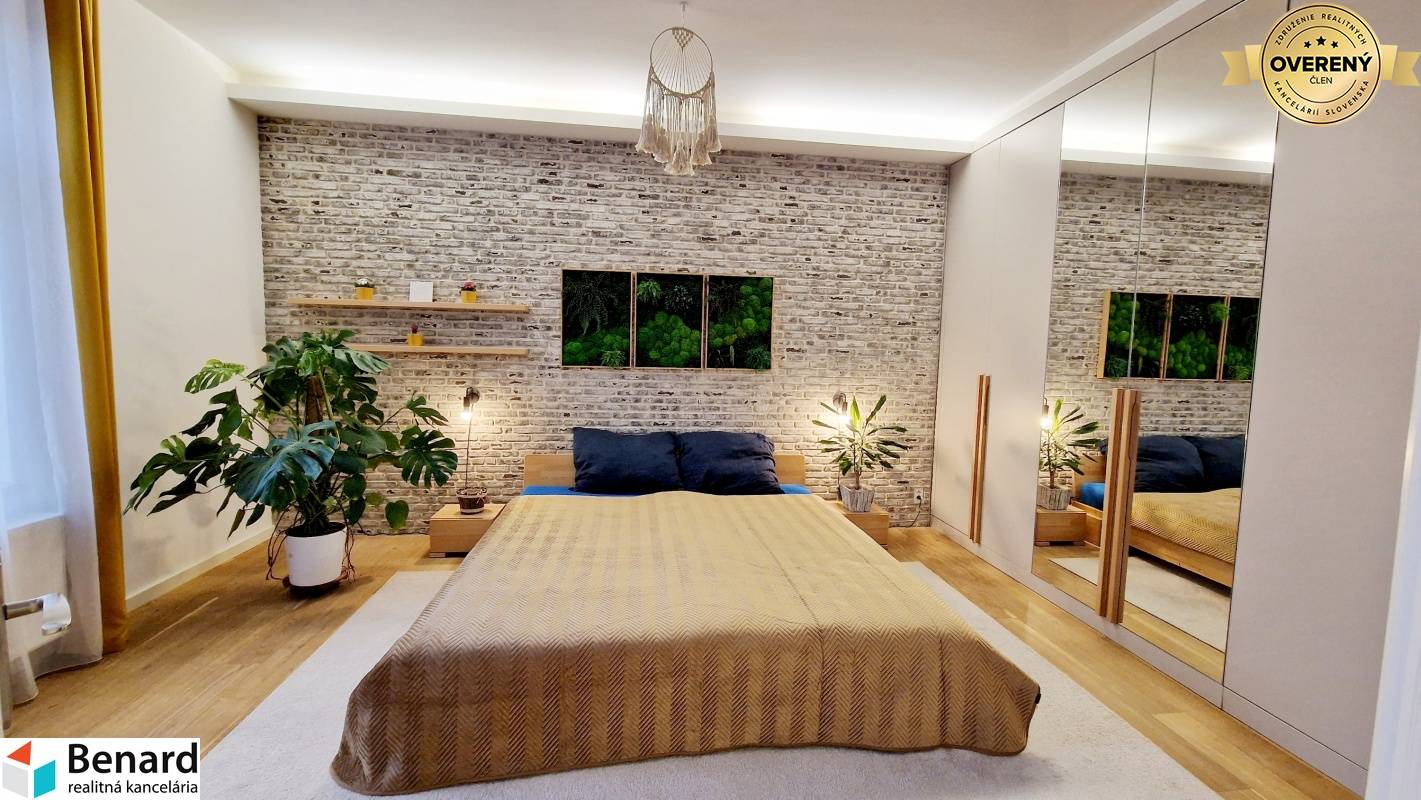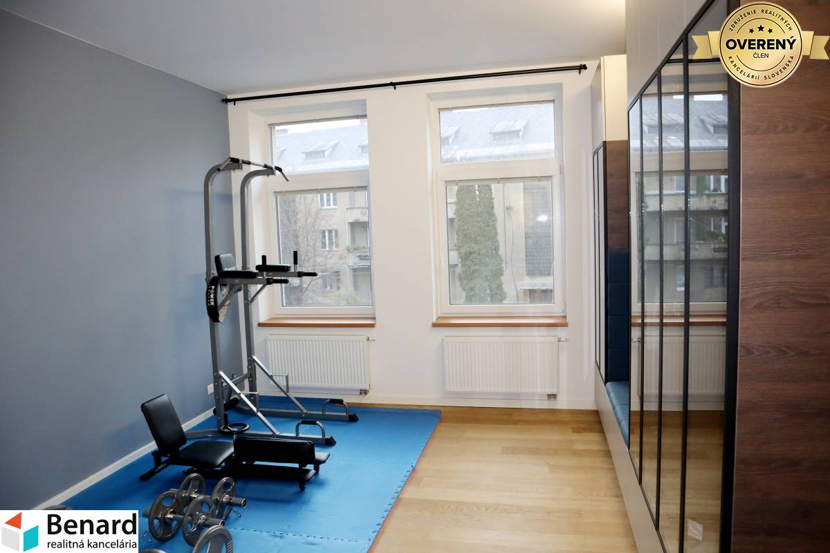 Pozostáva: chodba kuchyňa, spĺňa, obývacia miestnosť, posilňovňa, miestnosť na šatník, balkón, kúpeľne, WC. - 115 m2 , 1/1 - byt v osobnom vlastníctve - štýlovo zariadený byt - prešiel kompletnou rekonštrukciou s nábytkom vyrobeným na mieru - v izbách drevené podlahy - keramická dlažba: wc, kúpeľňa - keramický obklad: kúpeľňa, wc - kuchynská linka: vstavané spotrebiče (sporák , digestor, chladnička, mraznička, elektrický sporák) - kúpeľňa sprchovací kút, skrinka, zrkadlo - plastové okná, žalúzie - teplý byt - vlastný kotol v byte - kozub ( vytvára príjemnú atmosféru bývania) - balkón Zariadenie bytu : TAK AKO VIDÍTE NA FOTKÁCH komplet zariadený! Elektrospotrebiče: práčka, vstavené spotrebiče v kuch. linke: chladnička s mrazničkou, mikrovlnka, rúra, elektrický sporák, digestor, televízor v obývacej izbe a kuchyni, automatická práčka, robotický vysávač, kávovar Zariadenie v posilňovni. Výhodou bytu - nachádza blízko centra, výborná lokalita. Dostatok zelene navôkol. Cena nájmu 2000€ vrátane energií, internet. Byt je voľný do 01.04.2026. Určený pre: max dve osoby, bez zvierat PLATBY: jeden depozit 2000€. Ak máte záujem o obhliadku, prípadne potrebujete viac informácii, nájdete nás v realitnom centre na Slovenskej ulici č. 8 v Prešove, alebo na benard@stonline.sk, tel.č: 0908 111 710.
