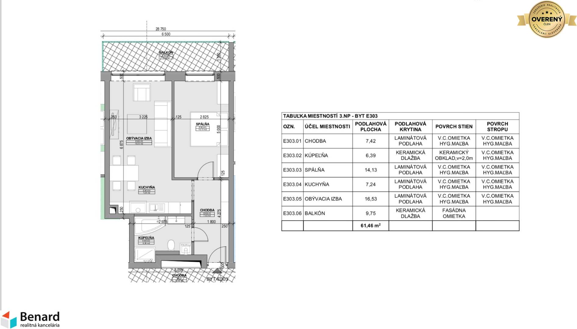 NAD KOVANCOM 2 IZBOVÝ BYT, 3.NP, 61,46m2;