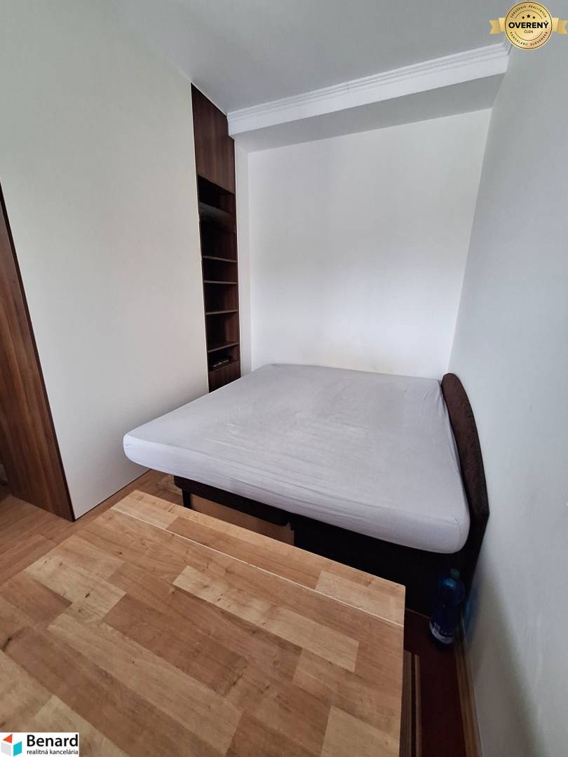 Ponúkame na predaj garsónku s menším francúzskym balkónom v širšom centre mesta Prešov - ul. Budovateľská. Bytový dom bol zrenovovaný z pôvodnej tehlovej budovy, byty (vrátane nadstavby) v ňom boli dokončené, skolaudované a dané do užívania v roku 2009. Má vlastnú kotolňu, je vhodný aj ako investícia s následným prenájmom. Uprednostňujeme platbu v hotovosti.. Pozostáva z chodby, kuchyne spojenej s izbou s výstupom na malý francúzsky balkón a spoločnej kúpeľne a WC. ZÁKLADNÉ ÚDAJE O BYTE: - celková výmera 24 m2 (+ balkón), 4/5 poschodie (bez výťahu), orientácia západ - tehlový bytový dom - osobné vlastníctvo, financovanie hypotékou možné (pomôžeme vám s jej vybavením) - kuchynská linka (r. 2009), indukčná varná doska (byt nemá plynovú prípojku) - plávajúca podlaha (izba, kuchyňa), keramická dlažba (kúpeľňa) - spoločná kúpeľňa a WC (sprchový kút) - plastové okno v kuchyni a na balkóne (2009) - nový radiátor - menší francúzsky balkón z izby (do dvora) - bez výťahu - okná mimo hlavnej cesty do dvora - pivnica - vlastná kotolňa v bytovom dome - náklady 110 eur/1 osoba + energie - parkovanie vo dvore, k dispozícii jedno parkovacie miesto Bytový dom nemá výťah! Nachádza sa v širšom centre mesta, blízko je zastávka MHD, potraviny, do centra mesta je cca 15 minút, s tým súvisí kompletná občianska vybavenosť. Uprednostňujeme platbu hotovosťou, v prípade rýchleho jednania je zľava z ceny možná. Ak máte záujem o obhliadku prípadne potrebujete viac informácii nájdete nás v realitnom centre na Slovenskej ul. č. 8 v Prešove, prípadne na kocisova@benard.sk alebo na telefónnom čísle 0910 900 920 ZADARMO K TEJTO NEHNUTEĽNOSTI DOSTANETE: - inzerovanie nehnuteľnosti na najsledovanejších realitných portáloch a v miestnych novinách; - preverenie právneho stavu a tiarch danej nehnuteľnosti; - vysvetlenie problémov záložných tiarch, vecných bremien a pod.; - právny servis zabezpečený právnikom s dlhoročnými skúsenosťami; - kópiu LV prípadne katastrálnej mapy s kolkom na právne účely; - poplatky za overenie podpisov na zmluvách u notára; - správny poplatok za vklad vlastníckeho práva do katastra vo výške 100,-€ - realitné, daňové a právne poradenstvo; - zabezpečenie znalca na vypracovania znaleckého posudku; - vypracovanie ponúk na zabezpečenie úveru u nášho hypotekárneho odborníka, ktorý spolupracuje s viacerými bankami