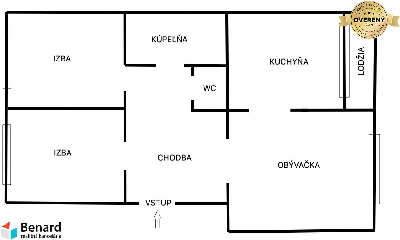 Ponúkame na predaj zrekonštruovaný 3 izbový byt na sídlisku KVP v Košiciach - ulica Čordákova. Dohoda na cene je možná v prípade vážneho záujmu. Byt prešiel rekonštrukciou (okná, podlahy, dvere, kúpeľňa, elektroinštalácia) a tiež menšou zmenou dispozície - prepojenie kuchyne s obývačkou, kúpeľňa oddelená od WC. Pozostáva z väčšej chodby, obývačky prepojenej s kuchyňou (so vstupom na lodžiu), dvoch izieb a oddelenej kúpeľne a WC. ZÁKLADNÉ ÚDAJE O BYTE: - celková výmera 70 m2 (+ lodžia), 7/8 poschodie, orientácia východ - západ - panelový bytový dom - osobné vlastníctvo, financovanie hypotékou možné (pomôžeme vám s jej vybavením) - rekonštrukcia (rok 2019) - nová elektroinštalácia (okrem dvoch izieb) - znížený strop (chodba) - nová kuchynská linka so zabudovanými spotrebičmi (vrátane umývačky riadu) - nové interiérové dvere a zárubne, v kúpeľni posuvné dvere - plávajúca podlaha (izby, obývačka), keramická dlažba (kuchyňa, chodba, kúpeľňa, wc) - nové radiatory - plastové okná vrátane lodžie - zrekonštruovaná kúpeľňa, samostatné WC - vstavaná skriňa na chodbe a v spálni - pivnica (cca 5 m2) - nové stupačky Byt je k dispozícii ihneď po kúpe. Pri rýchlom jednaní zľava z ceny možná. Bytový dom - panelová konštrukcia - nové vchodové dvere, tiež nové schránky, domový vrátnik, plánuje sa výmena výťahu Nachádza sa na obľúbenom sídlisku KVP, v blízkosti je detské ihrisko, zastávka MHD, potraviny, neďaleko tiež základná a materská škola Ak máte záujem o obhliadku prípadne potrebujete viac informácii nájdete nás v realitnom centre na Slovenskej ul. č. 8 v Prešove, prípadne mailom na kocisova@benard.sk alebo na telefónnom čísle 0910 900 920 ZADARMO K TEJTO NEHNUTEĽNOSTI DOSTANETE: - inzerovanie nehnuteľnosti na najsledovanejších realitných portáloch a v miestnych novinách; - preverenie právneho stavu a tiarch danej nehnuteľnosti; - vysvetlenie problémov záložných tiarch, vecných bremien a pod.; - právny servis zabezpečený právnikom s dlhoročnými skúsenosťami; - kópiu LV prípadne katastrálnej mapy s kolkom na právne účely; - poplatky za overenie podpisov na zmluvách u notára; - správny poplatok za vklad vlastníckeho práva do katastra vo výške 100,-€ - realitné, daňové a právne poradenstvo; - zabezpečenie znalca na vypracovania znaleckého posudku; - vypracovanie ponúk na zabezpečenie úveru u nášho hypotekárneho odborníka, ktorý spolupracuje s viacerými bankami