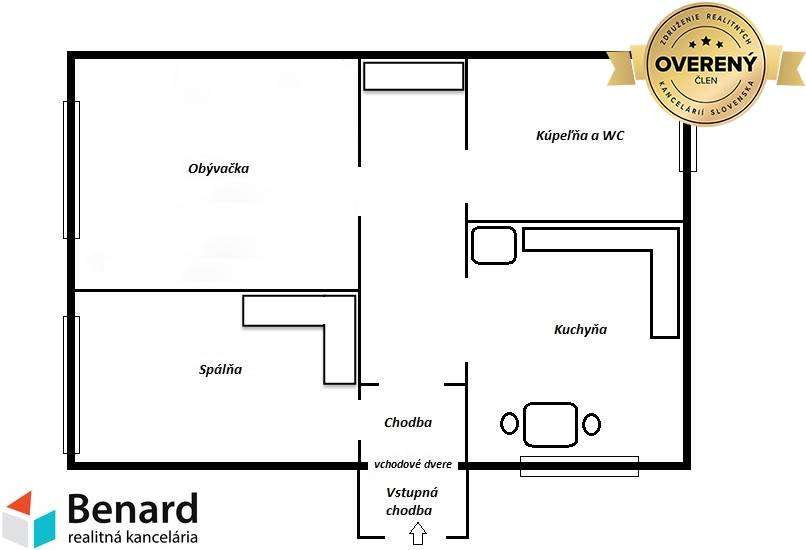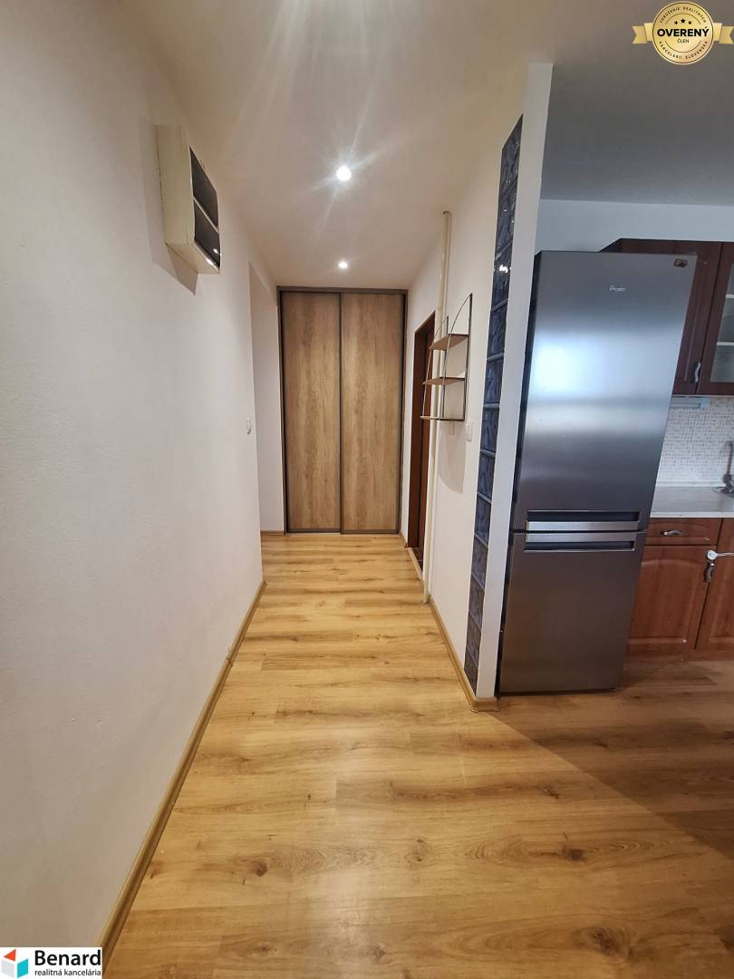 Ponúkame na prenájom zariadený a rekonštruovaný 2 izbový byt v širšom centre mesta - ul Majakovského v Prešove. Bonusom je samostatný vlastný bezbariérový vstup do bytu so vstupnou chodbičkou. Byt je voľný, hneď k dispozícii, max 2 osoby. Uvedená cena je vrátane energií (internet podľa dohody). Pri dlhodobom nájme je dohoda na cene možná. Byt je vhodný aj na podnikateľské účely / pre firmu, nakoľko byt disponuje samostatným vchodom priamo z ulice. Pozostáva z chodby, obývačky, veľkej kuchyne, spálne a spoločnej kúpeľne a WC. ZÁKLADNÉ ÚDAJE O BYTE: - celková výmera 55 m2 (vrátane murovanej pivnice cca 6 m2), prízemie/3 poschodie, orientácia sever - východ - juh - tehlový bytový dom - kompletná rekonštrukcia okien, podláh, dverí, kúpeľne, elektroinštalácie - drevené okná v celom byte - plávajúca podlaha, keramická dlažba (kúpeľňa a chodba) - zrekonštruovaná kúpeľňa spoločná s WC - nová elektroinštalácia v celom byte - nové interiérové dvere a zárubne (2x), v kúpeľni posuvné dvere - protipožiarne vchodové dvere - znížený strop - murovaná pivnica (6 m2) - nové stupačky - poloha mimo hlavnej cesty V byte ostáva kuchynská linka, sporák, digestor, chladnička s mrazničkou, jedálenský stôl, stoličky, manželská posteľ (bez matracov), vstavané skrine, rohová sedačka, stolík, podľa dohody aj práčka. Bytový dom - tehlová konštrukcia, zateplený - samostatný vstup do bytu priamo z ulice - nové vchodové dvere, okná v spoločných priestoroch, tiež nové schránky, domový vrátnik Nachádza sa v širšom centre mesta, v blízkosti kompletná občianska vybavenosť - detské ihrisko, zastávka MHD, lekáreň, pošta, potraviny, nový futbalový štadión, do centra mesta je cca 15 minút pešo. Ak máte záujem o obhliadku prípadne potrebujete viac informácii nájdete nás v realitnom centre na Slovenskej ul. č. 8 v Prešove, prípadne na kocisova@benard.sk alebo na telefónnom čísle 0910 900 920