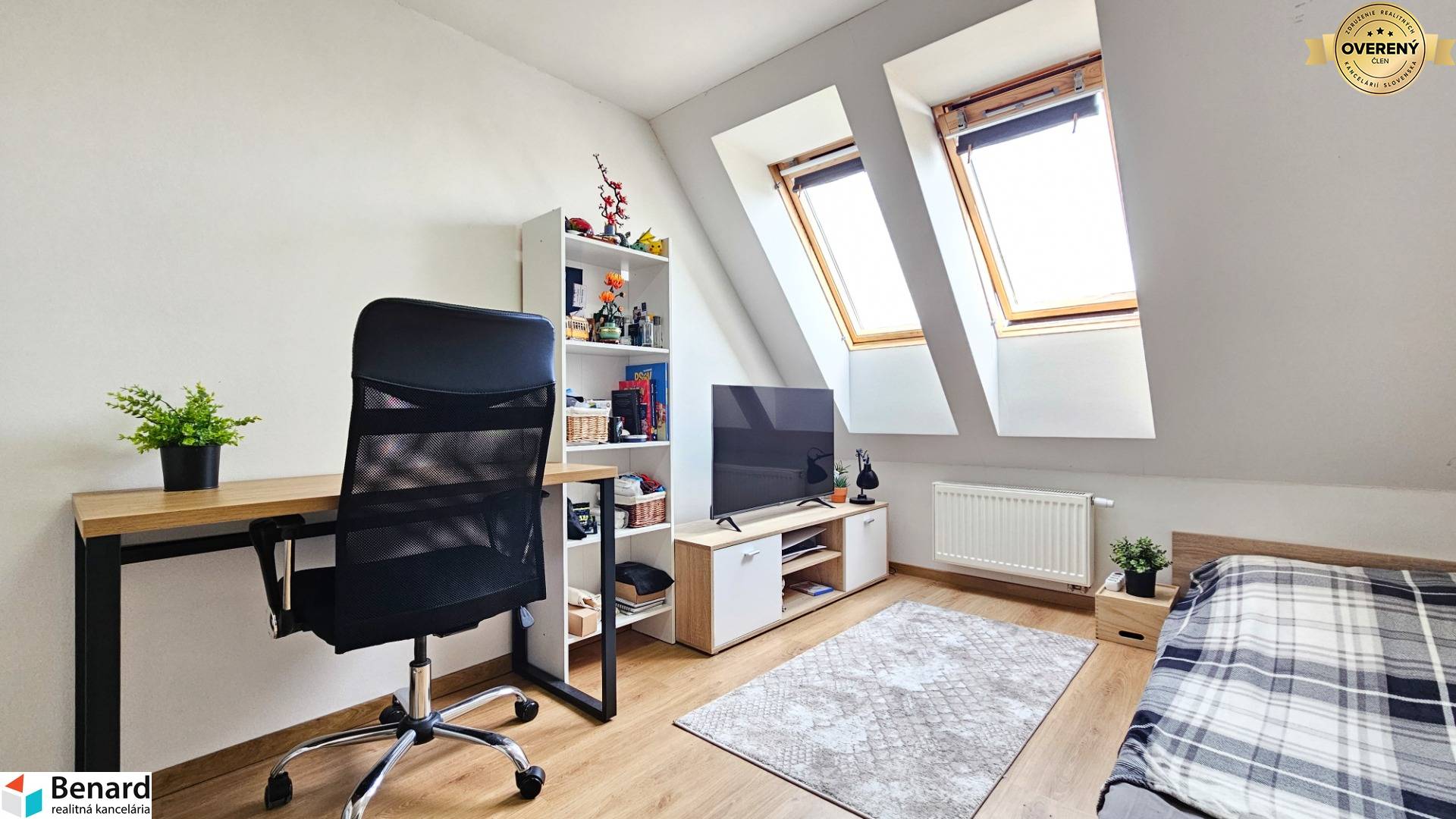 Rozloha bytu je 103 m2. Bytovka je situovaná v tichej časti, mimo hlavnej cesty, čo zabezpečuje tiché bývanie. Byt je slnečný a teplý. V byte je klimatizačná jednotka, ktorá Vám zabezpečí príjemné osvieženie počas letných mesiacov. Byt má balkón a nachádza sa na 3. poschodí.