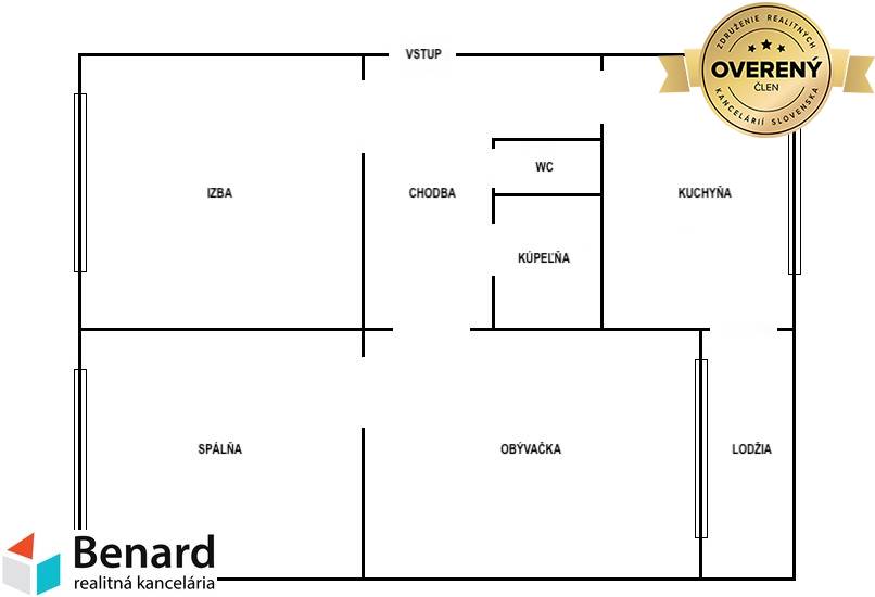 - veľká lodžia (vstup z kuchyne aj obývačky)