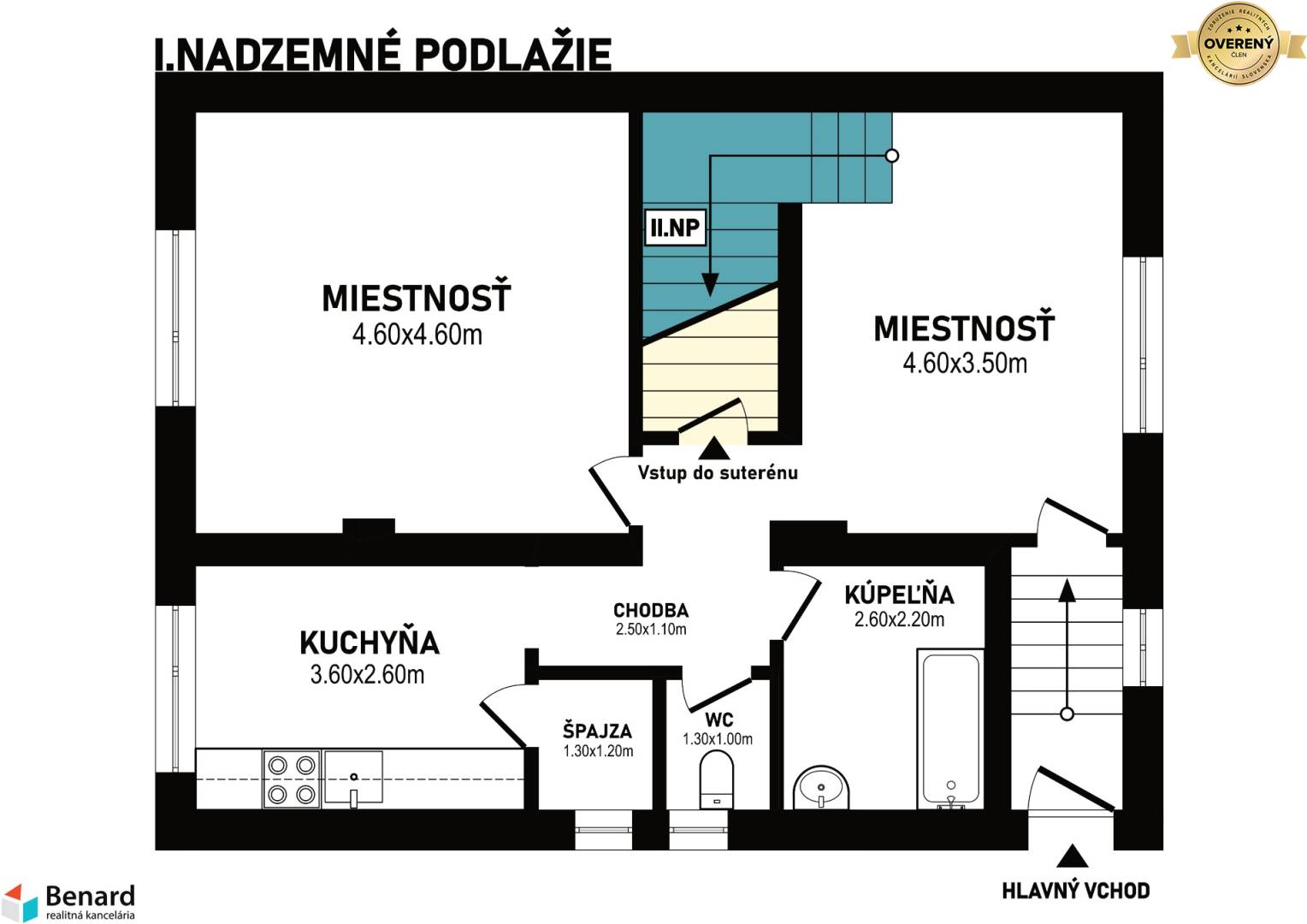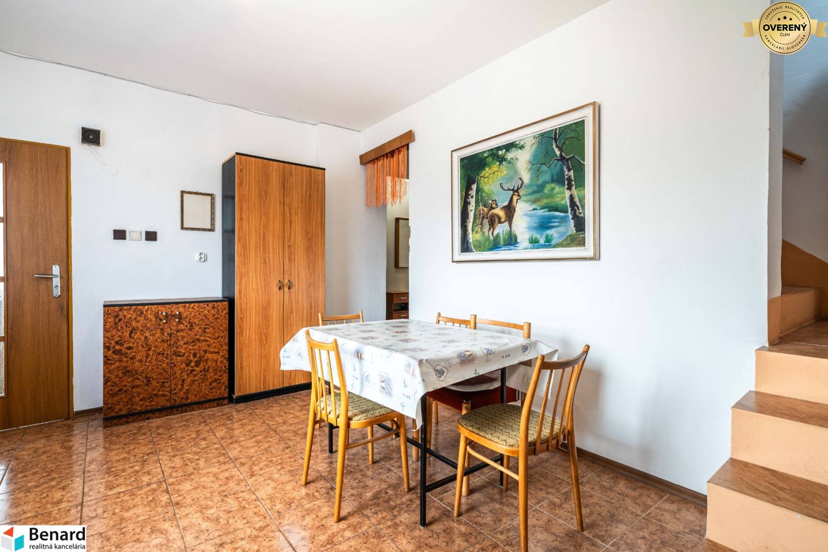 REZERVOVANÉ: Ponúkame vám exkluzívne na predaj samostatne stojaci rodinný dom v obci Seniakovce, ktoré sú vzdialené od Košíc autom 10 min. a cca 20 min. od Prešova. V obci je slušné a komunitné bývanie. Nehnuteľnosť zaujme najmä tichou lokalitou, pretože sa nachádza mimo hlavnej cesty, ale zároveň má obec strategickú polohu s jednoduchým a rýchlym napojením na diaľnicu. Voľné chvíle si môžete v pokoji vychutnávať na pozemku, ktorý je rovinatý s veľkosťou 2 310 m². Hľadáte dom s dostatkom miesta pre celú rodinu, prípadne s možnosťou viacúčelového využitia? Tento dvojpodlažný rodinný dom s úžitkovou plochou 137 m² a plne podpivničeným suterénom (71 m²) ponúka veľkorysý priestor a množstvo možností na prispôsobenie podľa vašich potrieb. Dispozícia domu: - Prízemie – vstupná chodba, kúpeľňa, samostatná toaleta, priestranná obývacia izba a kuchyňa so špajzou, ktorú ocení každá gazdinka. - Poschodie – chodba vedúca do troch nepriechodných izieb, pričom dve sú orientované na západnú stranu a tretia izba s loggiou na východ, ideálna na ranné slnečné lúče. Na podlaží je druhá kúpeľňa a samostatná toaleta. - Suterén – kotolňa, technická miestnosť a niekoľko ďalších miestností, ktoré ponúkajú obrovský potenciál, možno ich využiť či na nejakú saunu, fitness, herňu či hobby miestnosť. Pozemok a orientácia: Dom sa nachádza na rozsiahlom a krásnom pozemku, ktorý ponúka dostatok súkromia aj priestoru na oddych. Orientácia na východ a západ zabezpečí dostatok denného svetla počas celého dňa. Tento dom je ideálny pre rodinné bývanie, viacgeneračné využitie alebo na podnikateľské účely. Ak hľadáte priestor, ktorý si môžete prispôsobiť, pretvoriť podľa vlastných predstáv, neváhajte ma kontaktovať a dohodnite si obhliadku. Výhody tohto domu: - skvelá dostupnosť autom do Košíc (10 min.), Prešova (20 min.), - rýchle a jednoduché napojenie na diaľnicu, - pár krokov od domu je autobusová zastávka, - rovinatý, oplotený pozemok, - dom je napojený na vlastnú studňu, elektrinu, žumpu, pár metrov pred domom je však možnosť pripojenia sa na plyn, či obecný vodovod, - ihneď obývateľný, alebo si ho môžete zrekonštruovať podľa vlastných predstáv, - kúpou ihneď voľný, - pred kúpou tejto nehnuteľnosti získate od nás informácie o najvýhodnejšom hypotekárnom úvere priamo pre vás. V prípade, že vás ponuka zaujala, kontaktujte nás na číslo 0907 391 442 a dohodnite si s nami obhliadku. Tešíme sa na stretnutie. Textový aj grafický obsah dokumentu je autorským dielom a majetkom spoločnosti Benard, s.r.o. a jeho používanie alebo zneužitie je trestné.