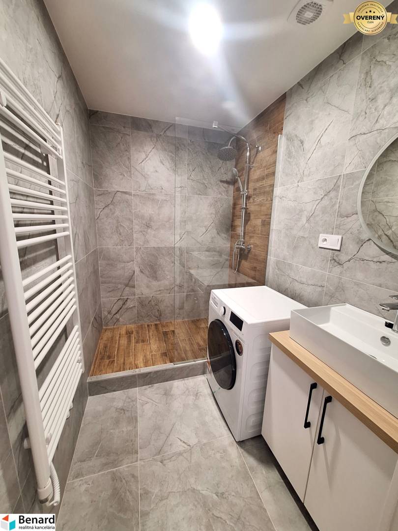 - nová kúpeľňa (veľký sprchový kút, nové obklady, dlažba), rebríkový radiátor, nová práčka so sušičkou