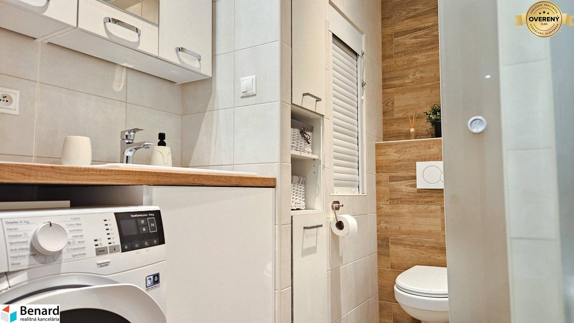 - byt je kompletne zariadený nábytkom, spotrebičmi (umývačka riadu, práčka so sušičkou), stačí si priniesť osobné veci a bývať,