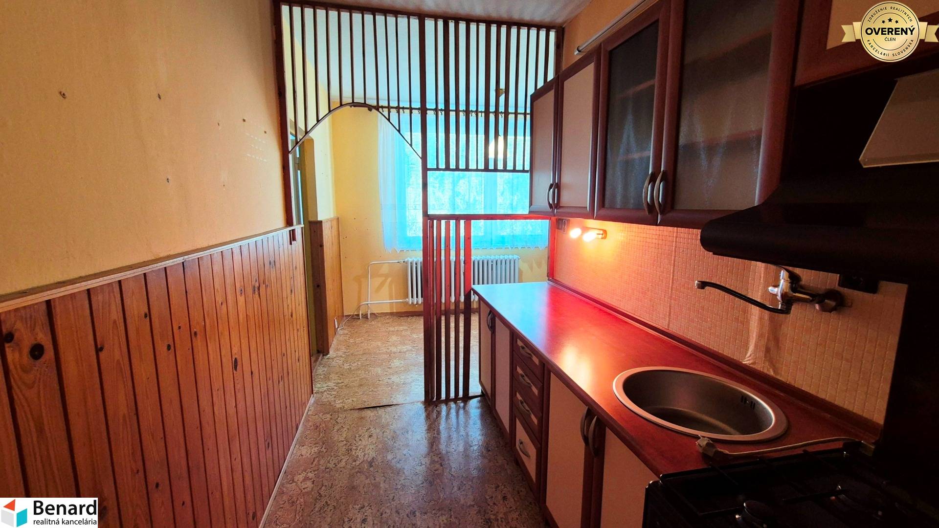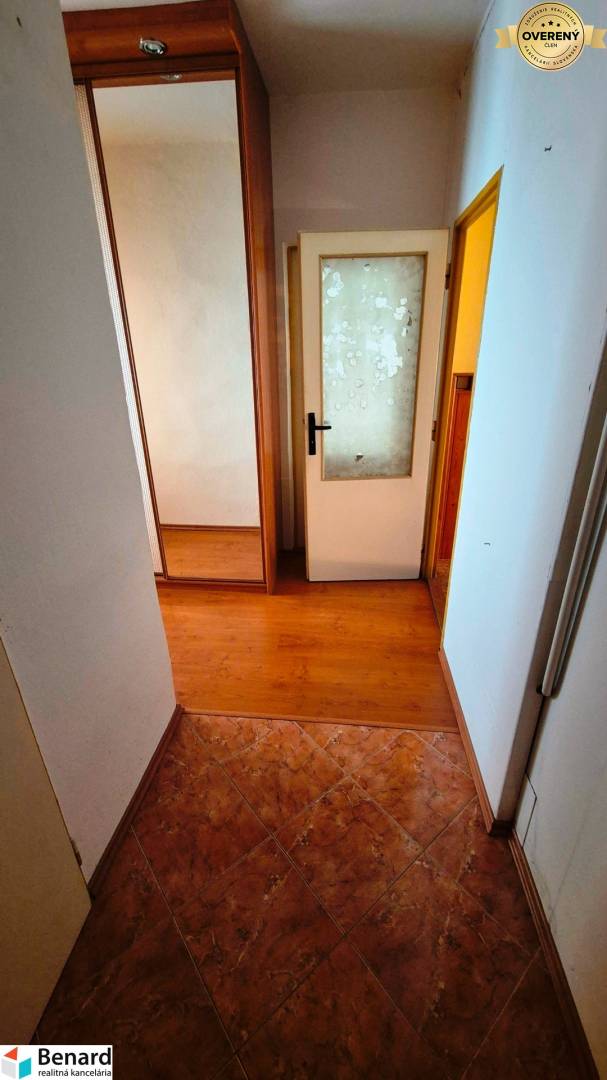 Ponúkame Vám na kúpu priestranný 2 izbový byt s kumbálom v pôvodnom stave na ul. Komenského /blízko ŠRC/, ktorý je situovaný na 3/3 poschodí. Bytový dom, kde sa byt nachádza ja zrekonštruovaný, zateplený s novou strechou a zrekonštruovaným vchodom. ZÁKLADNÉ INFORMÁCIE O BYTE: - byt je v pôvodnom stave, umakartové jadro; - plastové okna v celom byte; - rozloha bytu je 62m2; - obývačka (20,7m2), izba (14m2), kumbal (3,2m2); - k bytu patrí murovaná priestranná pivnica + 2x spoločné priestory; - byt nemá balkón, možnosť využiť na chodbe; - orientácia bytu Juhovýchod – Severozápad; - dostatok slnka, lepší výhľad; KÚRENIE, SPRÁVA, NÁKLADY: - bytový dom spravuje Slobyterm; - náklady sú t.č. navýšené s veľkým preplatkom; - v prípade normálnej prevádzky okolo 150€ (správa, elektrika, plyn); - ohrev vody a kúrenie – kotolňa; - byt je teplý s nízkymi nákladmi na kúrenie; - zateplenie, strecha a vchod vyplatené; - odpad, vodovod zrekonštruovaný; BYTOVÝ DOM: - okolie domu s dostatkom zelene; - neďaleko ZŠ, MŠ, Tesco, obchody, všade blízko; - parkovanie verejné; - BD nemá výťah, pohyb po schodoch je zdravý :) ; Byt si viete zrekonštruovať podľa vlastných predstáv a možností.