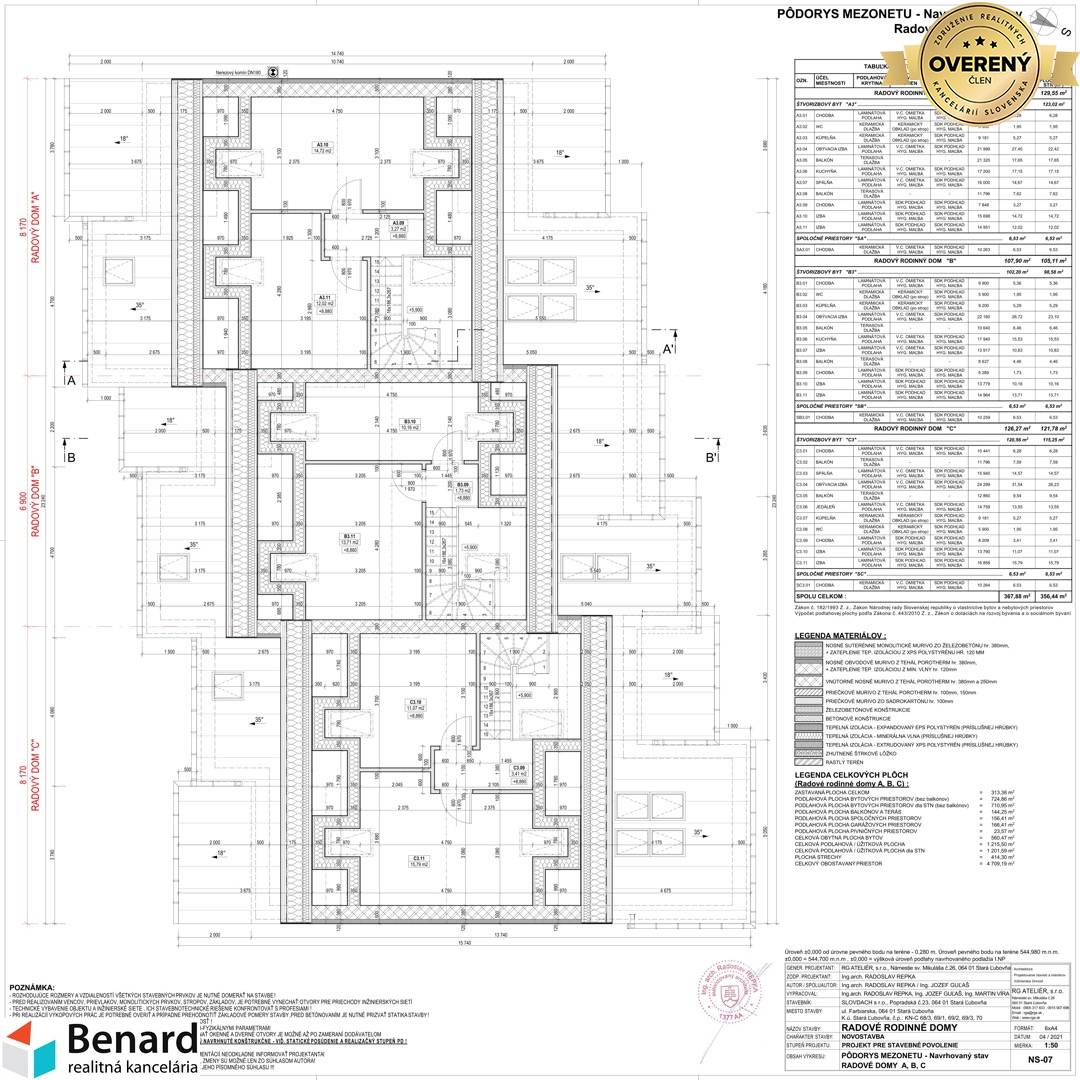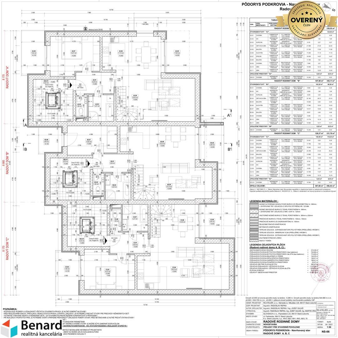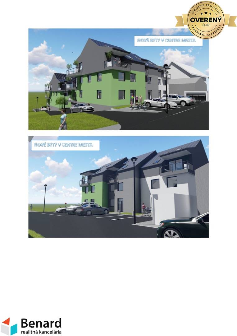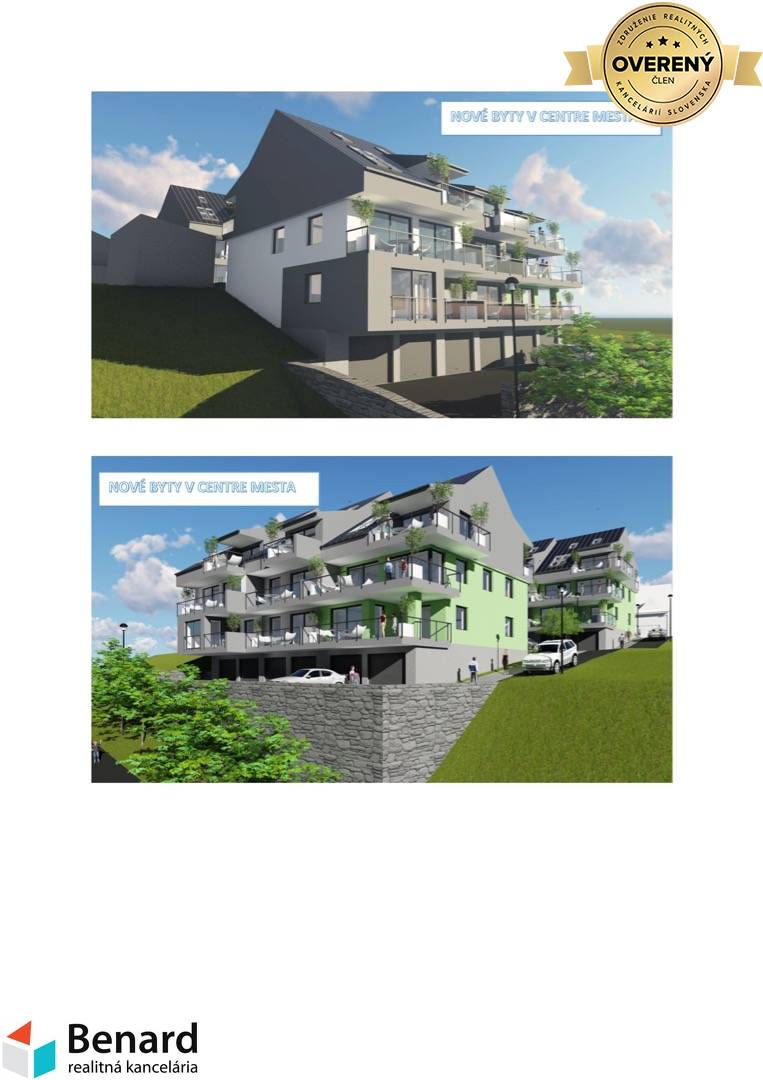 EXKLUZÍVNE v ponuke realitnej kancelárie BENARD ponúkame na predaj nadštandardné nové byty v bytovom dome A, B a C, každý s 3 bytovými jednotkami v centre mesta v Starej Ľubovni. V ponuke sú priestranné 3-izbové byty a 4-izbové mezonetové byty s veľkými balkónmi. Súčasťou objektu sú aj pivnice, vnútorné garážové parkoviská v objekte a vonkajšie parkoviská pred objektom. Každý bytový dom je vybavený výťahom. V cene bytu je zahrnutý nákup materiálu v spoločnosti JSM CENTRUM v hodnote 7000€. Termín kolaudácie 2. kvartál 2024. Stavbu realizuje spoločnosť SLOVDACH, s.r.o. Pre viac informácií kontaktujte RK. Popis objektu: - termín začatia a ukončenia výstavby – 2Q/2022 – 2Q/ 2024 - použité materiály na výstavbu – Tehla Porotherm PROFI - materiál strechy – falcovaný plech - materiál okien – izolačné trojsklo - materiál strešné okno – nadštandardné strešné bezúdržbové okná značka Velux - materiál vchodových dverí – hlinikové - kúrenie – kombinované - podlahové, radiátory - centrálna kotolňa v bytovom dome „A“ - stierky – jemnozrnná štuková omietka - maľba v byte - biela - materiál podlahy liaty poter - nivelizácia podlahy - elektroinštalácia ( zásuvky, vypínače, rozvádzače) - balkóny - podlahová plocha dlažba, zábradlie - oceľové - byty sa budú odovzdávať ako holo byt - spoločné priestory vymaľované - internet - schránky - domový vrátnik - zvončeky - parkovacie plochy – betón, dlažba - fotovoltanika - príprava na klímu (horné byty)