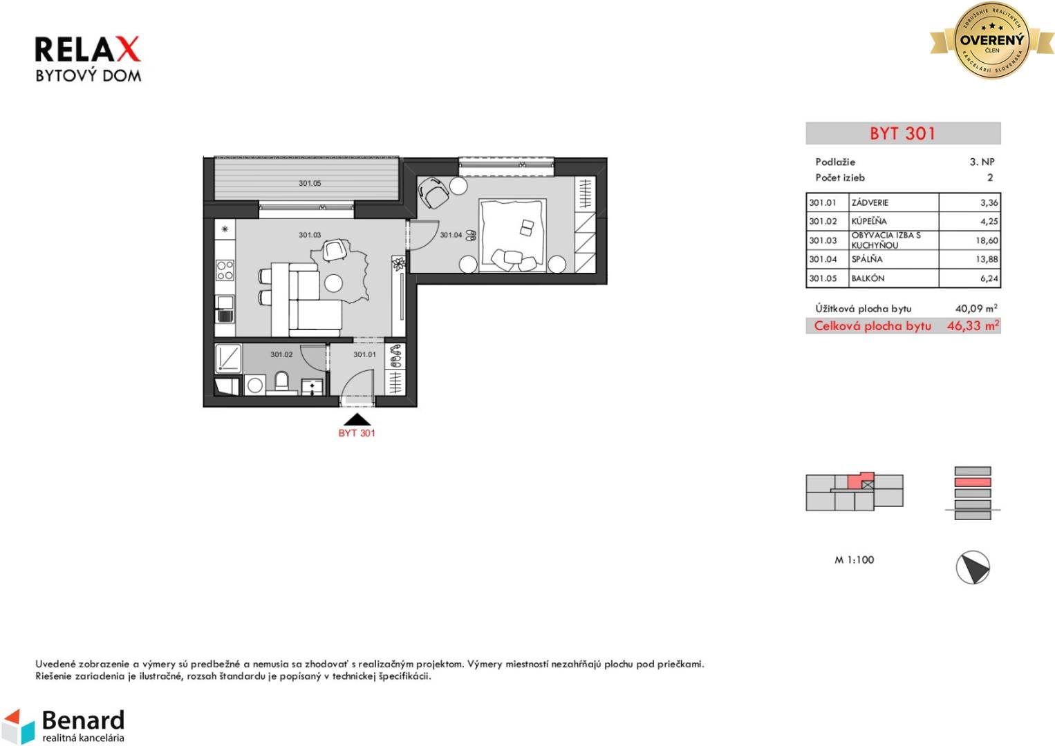 BD RELAX; 2 IZBOVÝ BYT; 3.NP; 46,33m2;PREDANÉ;