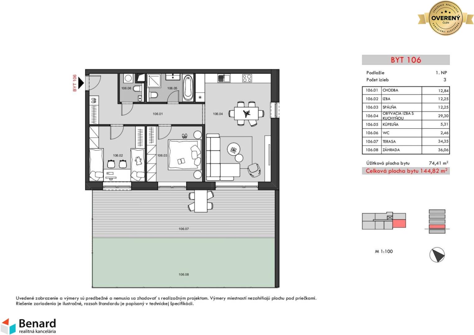BD RELAX; 3 IZBOVÝ BYT; 1.NP; ZÁHRADKA; 108,76m2;PREDANÉ;