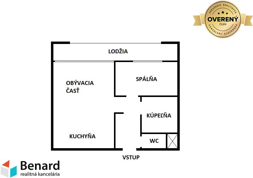 Byt pozostáva : vstupná chodba, obývacia miestnosť spojená s kuchyňou, spálňa, lodžia, kúpeľňa a samostatné WC.
