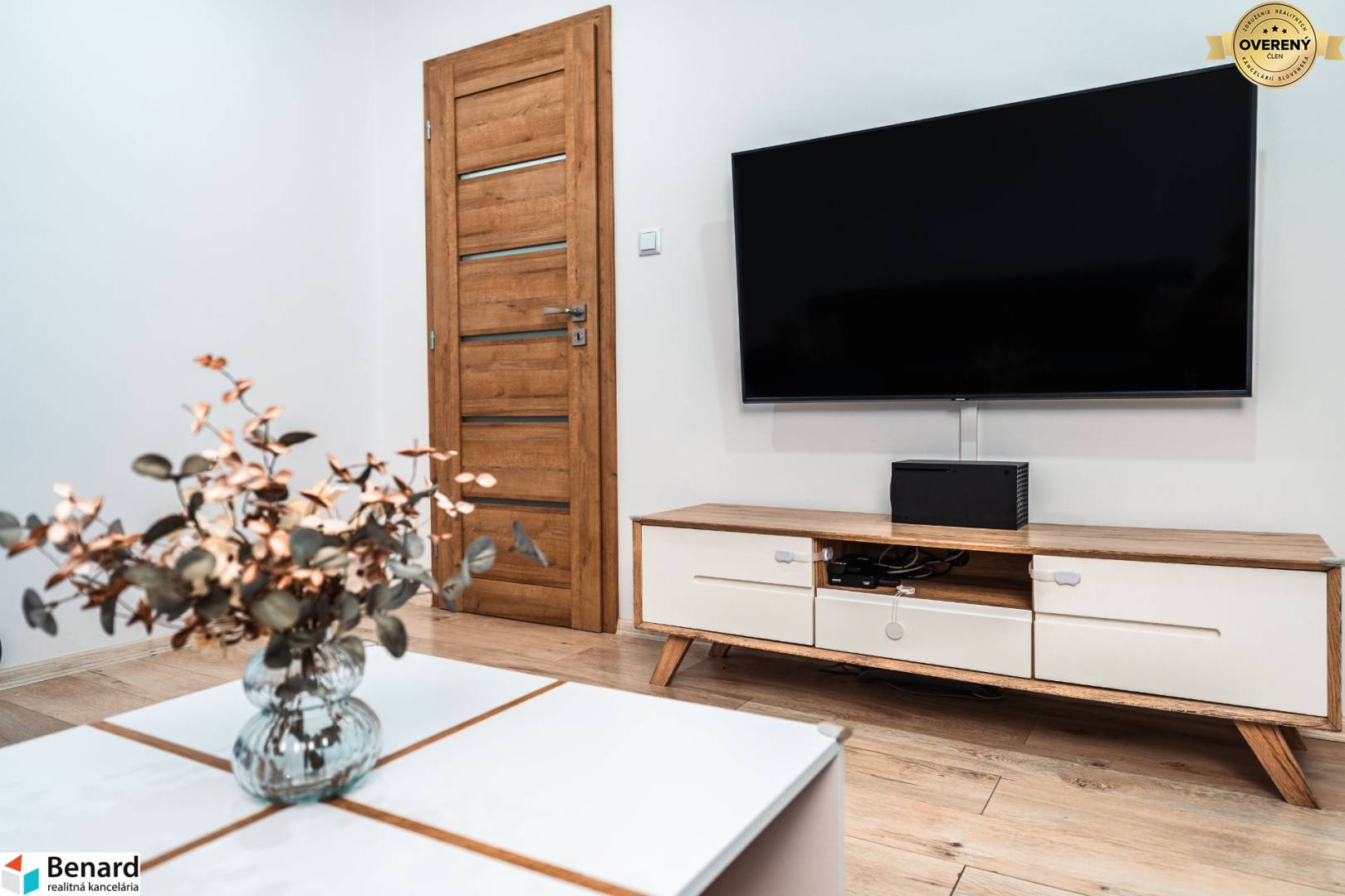 Byt sa nachádza na prízemí bytového domu, disponuje vnútornou loggiou a pred piatimi rokmi prešiel kompletnou rekonštrukciou. Je kompletne zariadený, takže nový majiteľ ho môže po kúpe ihneď užívať bez nutnosti ďalšieho zariaďovania. Praktické vstavané skrine v byte poskytujú dostatok úložného priestoru. Spálňa má samostatný vchod, čo zaručuje súkromie a kúpeľňa je oddelená od toalety. K bytu patrí aj murovaná pivnica. Celková výmera nehnuteľnosti je 51,57 m².
