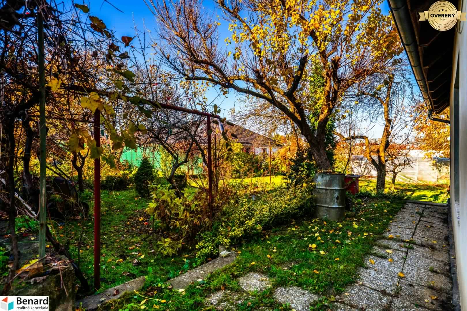 Pozemok má rozlohu 730 m² a nachádza sa na ňom aj samostatná garáž. Záhrada je bohatá na ovocné stromy – rastú tu kivi, hruška, jabloň, broskyňa, banánovník, muchovník, višňa, hrozno, slivka a ďalšie. Za domom je útulné posedenie s vonkajším krbom, ideálne na relax či rodinné oslavy a pred domom je pekná predzáhradka.