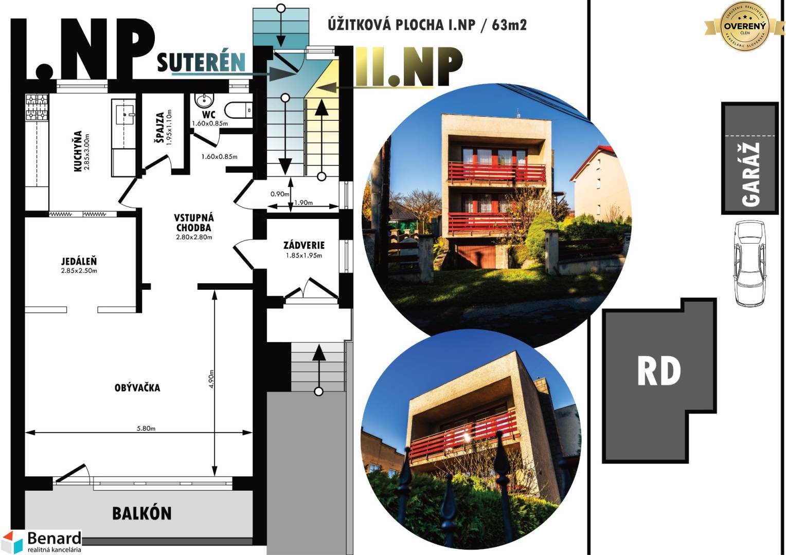 Rodinný dom sa nachádza mimo hlavného ťahu, v tichej lokalite a poskytuje komfortné bývanie pre celú rodinu. Na prvom poschodí sa nachádza chodba, priestranná obývačka spojená s jedálňou a kuchyňou, komora a toaleta. Druhé poschodie ponúka spálňu, detskú izbu, pracovňu, kúpeľňu s toaletou a miestnosť vhodnú napríklad na šatník. V suteréne je garáž, technická miestnosť a ďalšie priestory, ktoré je možné využiť ako sklad alebo dielňu. Dom je v pôvodnom, ale veľmi zachovalom stave s možnosťou sa ihneď nasťahovať.