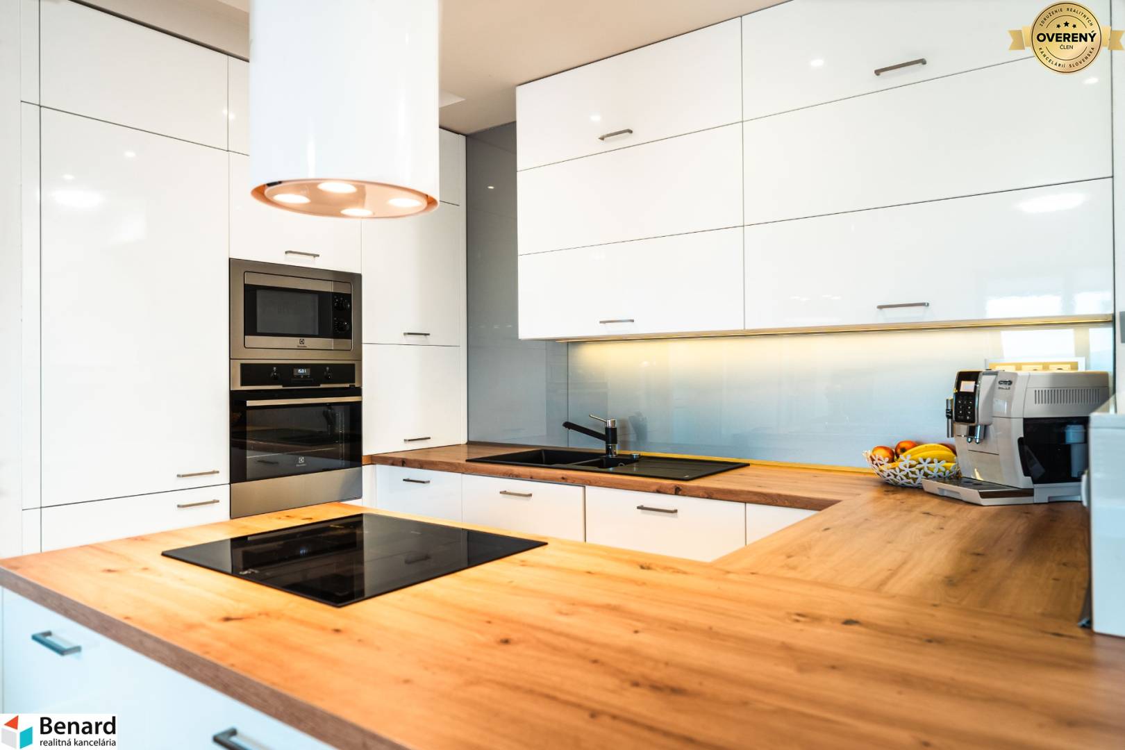 Hľadáte priestranný a moderný byt už v skolaudovanej novostavbe, ktorý je zariadený? Máme pre Vás na predaj 4-izbový byt v novostavbe s parkovacím miestom. Byt sa nachádza na Jelšovej ulici, v obľúbenom projekte Panoráma. Ak si potrpíte na prostredie, v ktorom žijete a túžite po čerstvom vzduchu, či výhľade na lúky a lesy, tak Panoráma je pre vás ideálnou voľbou. Okolitá príroda a les ponúkajú pestré možnosti oddychu a rekreácie. Nájdete tu materskú školu, ohradený areál, kde sú detské ihriská, krásne a záhradníkom udržiavané pozemky, aj zastávku MHD. Rodičia určite ocenia, že za bytovými domami sa nachádza 250 metrov dlhý a oplotený dvor, kde sa môžu ich deti bezpečne hrať. Jednoducho všetko, čo potrebujete pre pohodlný, každodenný život. Táto lokalita je ideálnym miestom pre rodiny a pre komunitný život. Bytový dom je postavený z tehly a je zateplený prírodným materiálom, s 15-centimetrovou minerálnou vlnou. V bytovke sú štyri poschodia a predávaná nehnuteľnosť sa nachádza na 3. p. Byt je priestranný a má skvelé rozloženie. Spálňa, detská izba a pracovňa majú samostatné vstupy, sú nepriechodné. Kupujúci určite ocenia, že v byte sú dve toalety a dva samostatné balkóny, na ktoré sa dostanete z obývačky a zo spálne. Môžete si tak vychutnávať výhľady na okolitú prírodu. V dennej časti sa nachádza spojená obývačka s kuchyňou, kde je klimatizácia. V byte sú kvalitné okná s trojsklom. V bytovke sa nachádza plynová kotolňa, ktorá slúži na vykurovanie a ohrev úžitkovej vody, preto sú tu nízke mesačné náklady. Výhodou je, že k dispozícii je komora, ktorá sa nachádza oproti bytu a tiež pivnica, ktorá je na prízemí. Kupujúci má možnosť si zakúpiť k bytu parkovacie miesto, ktoré je hneď pri bytovom dome. Má tak možnosť istoty, že vždy zaparkuje a komfort, ktorý so sebou takéto vlastníctvo prináša. Cena parkovacieho miesta je 10.000 eur. Výhody Vášho budúceho domova sú: - nízke mesačné náklady, - byt je priestranný, - byt má dva balkóny s krásnym výhľadom, - k dispozícii je komora, ktorá sa nachádza oproti bytu a tiež pivnica, ktorá je na prízemí bytového domu, - tiché bývanie s množstvom zelene, - možnosť zakúpiť si parkovacie miesto, ktoré je hneď pri bytovom dome, - celková plocha bytu je 102 m2 a plocha obytných miestností je 92,43 m2, - príďte sa o týchto, a aj iných výhodách presvedčiť sami a rezervujte si obhliadku na čísle 0903 367 922.