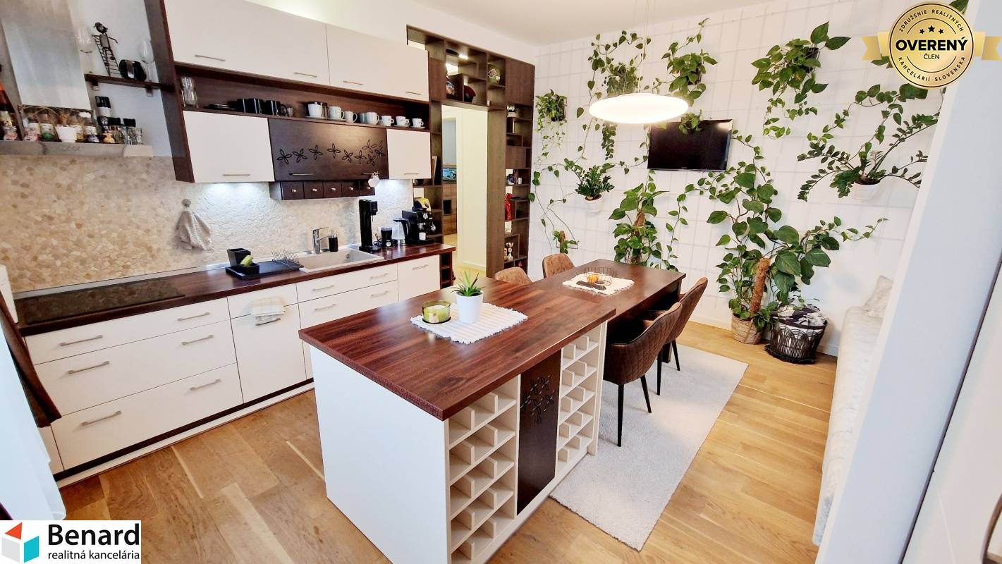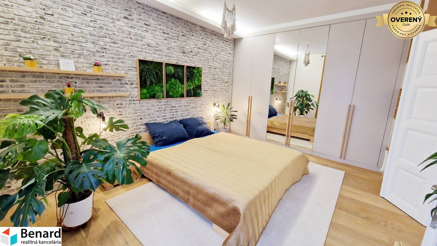 Pozostáva: chodba kuchyňa, spĺňa, obývacia miestnosť, posilňovňa, miestnosť na šatník, balkón, kúpeľne, WC. - 115 m2 , 1/1 - byt v osobnom vlastníctve - štýlovo zariadený byt - prešiel kompletnou rekonštrukciou s nábytkom vyrobeným na mieru - v izbách drevené podlahy - keramická dlažba: wc, kúpeľňa - keramický obklad: kúpeľňa, wc - kuchynská linka: vstavané spotrebiče (sporák , digestor, chladnička, mraznička, elektrický sporák) - kúpeľňa sprchovací kút, skrinka, zrkadlo - plastové okná, žalúzie - teplý byt - vlastný kotol v byte - kozub ( vytvára príjemnú atmosféru bývania) - balkón Zariadenie bytu : TAK AKO VIDÍTE NA FOTKÁCH komplet zariadený! Elektrospotrebiče: práčka, vstavené spotrebiče v kuch. linke: chladnička s mrazničkou, mikrovlnka, rúra, elektrický sporák, digestor, televízor v obývacej izbe a kuchyni, automatická práčka, robotický vysávač, kávovar Zariadenie v posilňovni. Výhodou bytu - nachádza blízko centra, výborná lokalita. Dostatok zelene navôkol. Cena nájmu 2000€ vrátane energií, internet. Byt je voľný do 01.04.2026. Určený pre: max dve osoby, bez zvierat PLATBY: jeden depozit 2000€. Ak máte záujem o obhliadku, prípadne potrebujete viac informácii, nájdete nás v realitnom centre na Slovenskej ulici č. 8 v Prešove, alebo na benard@stonline.sk, tel.č: 0908 111 710.