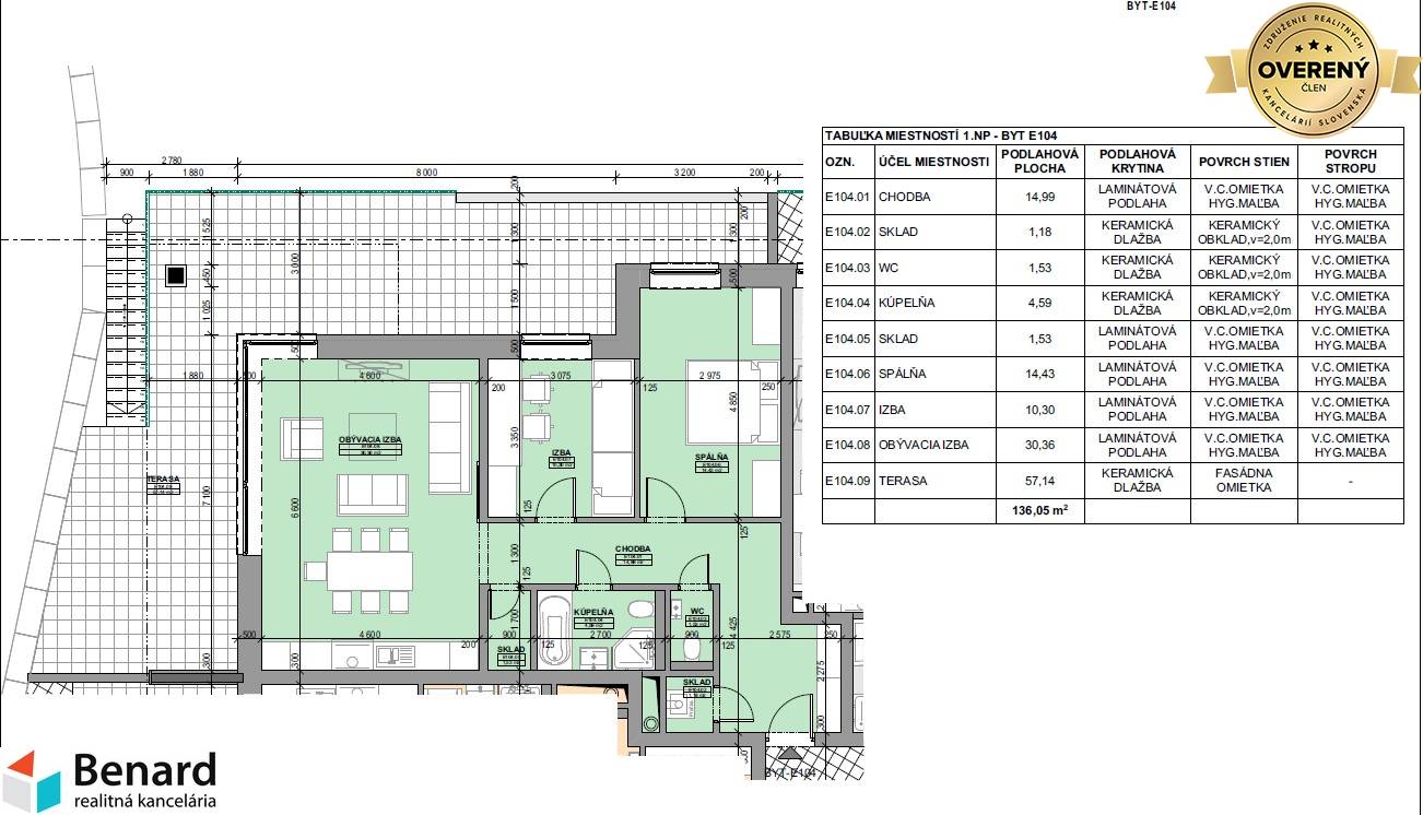 NAD KOVANCOM 3 IZBOVÝ BYT, 1.NP, 136,05m2;