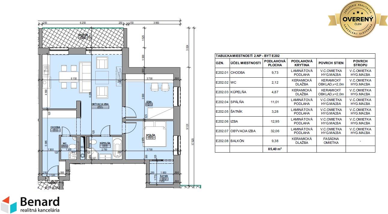 NAD KOVANCOM, 3 IZBOVÝ BYT, 2.NP, 85,4m2;