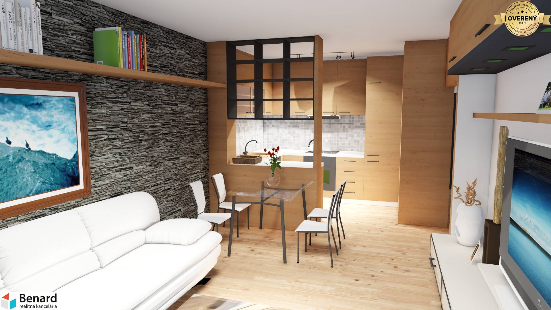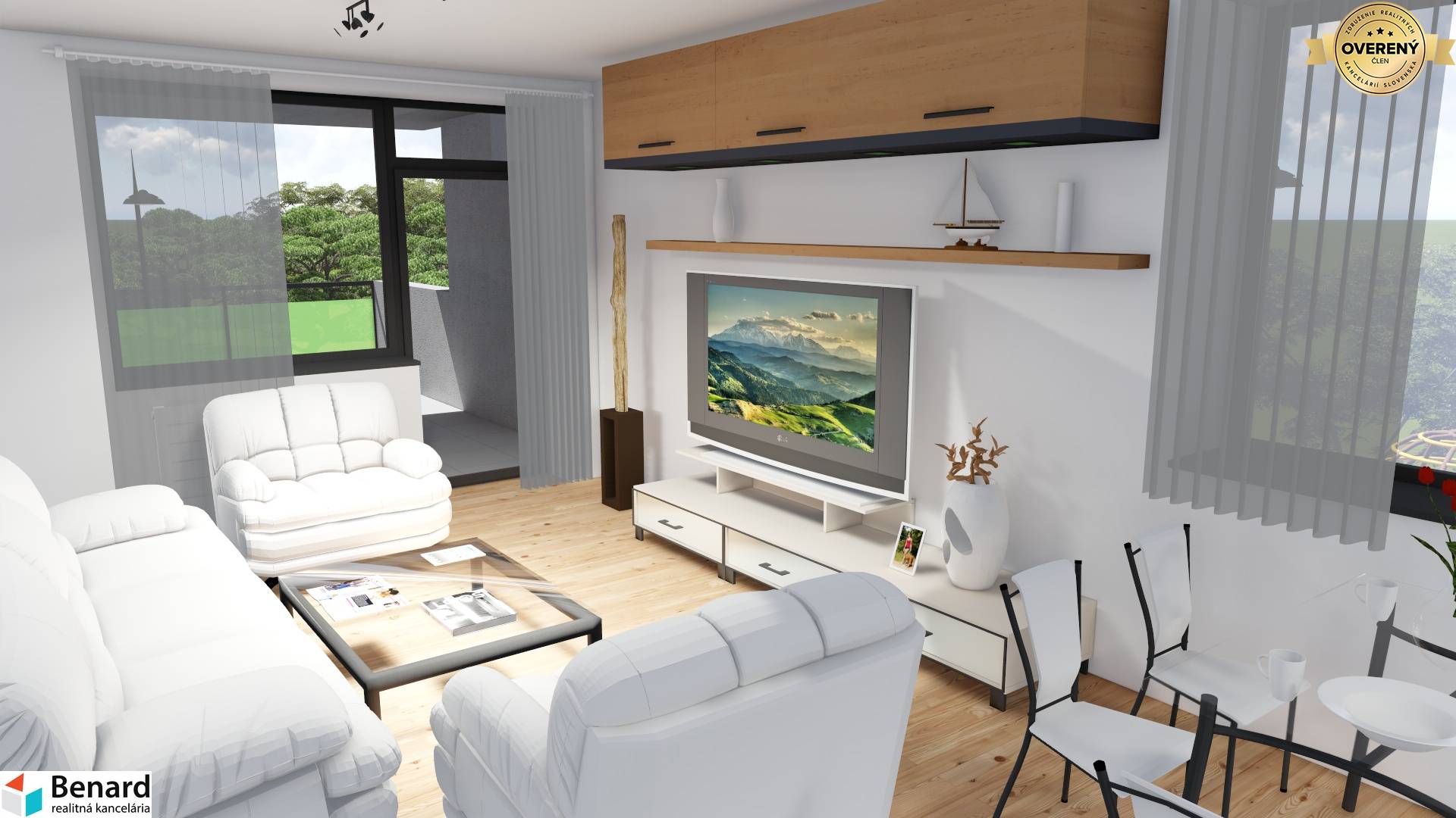 biele maľby stien a stropov, vykurovacie telesá – doskové radiátory alebo podlahové kúrenie,