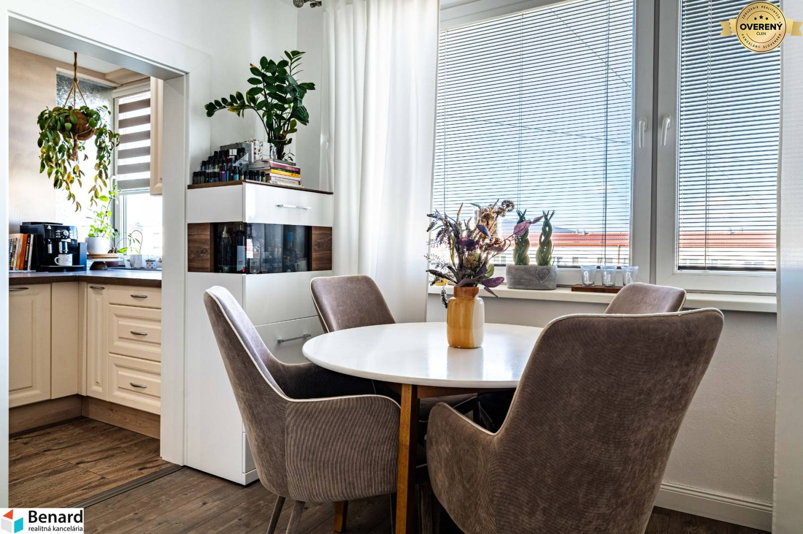 PREDANÉ: Hľadáte nehnuteľnosť po rekonštrukcii a čiastočne zariadenú? Ponúkame na PREDAJ krásny 3 -izbový byt, ktorý sa nachádza na ulici Obchodná, v Sečovciach. Benefitom je, že izby sú priestranné a neprechodné. Poskytujú tak dostatok úložného priestoru a súkromie. V spálni a v detskej izbe je klimatizačná jednotka. Úžitková plocha je 69m2. Vychutnať si svoj obľúbený nápoj môžete na útulnej loggii, ktorá je zasklená a má aj látkové žalúzie. Byt sa nachádza na 6.poschodí a má pivnicu. V bytovom dome je výťah. Bývanie je tu tiché, nakoľko je bytovka situovaný mimo hlavného ťahu. Navyše, v tesnej blízkosti nie je ďalšia bytovka, čo zabezpečuje väčšie súkromie. [b]Za výhody tejto ponuky považujem: [/b]- veľa zelene v okolí, - kúpa je vhodná aj na účely prenájmu, - byt je priestranný a má veľa úložného priestoru, - k dispozícii je zasklená loggia a pivnica, - v byte sú dve klimatizácie, - v kúpeľni je okno, - slušný vchod a milí susedia, - kompletná rekonštrukcia, ktorá prebehla pred 6 rokmi, - pred kúpou tejto nehnuteľnosti získate od nás informácie o najvhodnejšom hypotekárnom úvere priamo pre Vás. V prípade, že Vás ponuka zaujala, kontaktujte nás na číslo 0903 367 922 a dohodnite si s nami obhliadku. Tešíme sa na stretnutie.