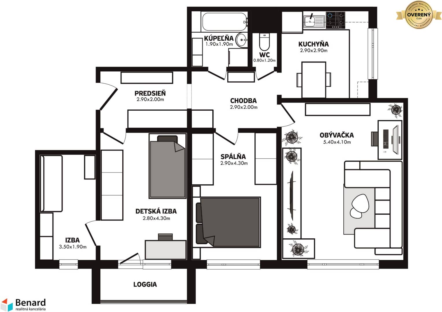 - priestranný, svetlý 3,5 - izbový byt s rozlohou 75 m² + loggia,