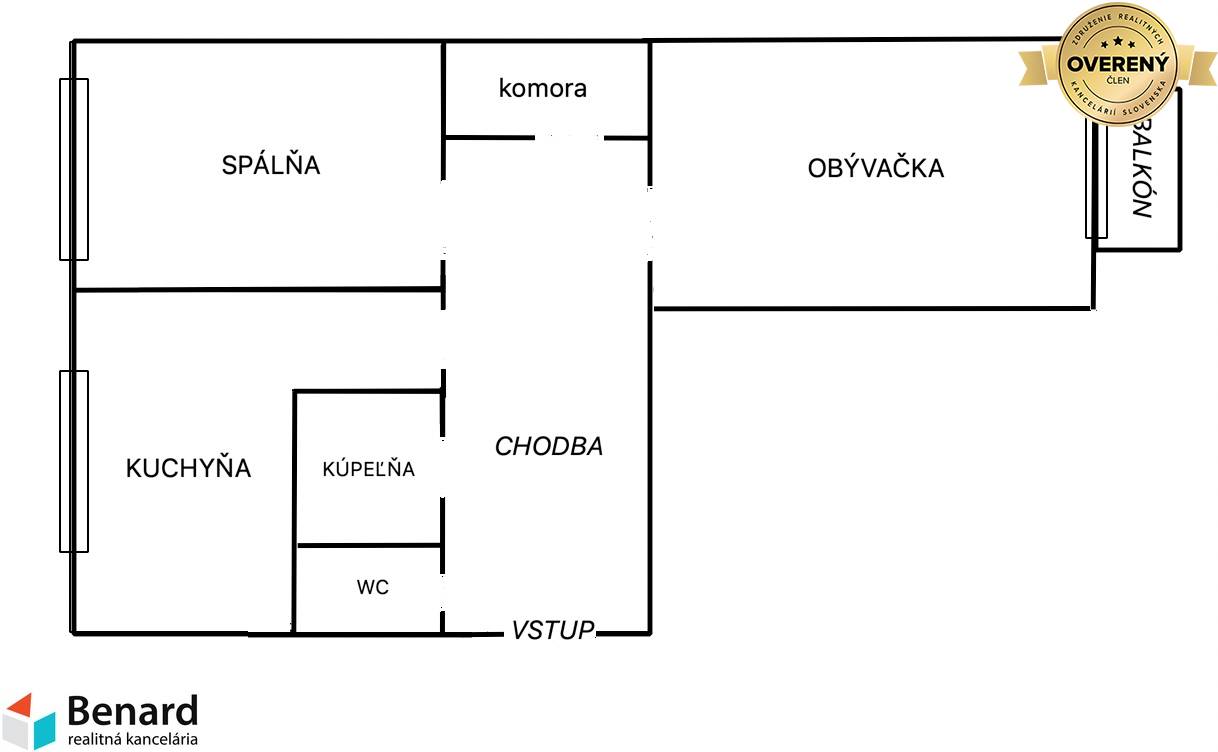 Ponúkame na predaj veľký 2 izbový tehlový byt s balkónom, s vlastným kúrením v širšom centre mesta - ul. Pavlovičovo námestie v Prešove. Každý byt v bytovom dome má vlastný kotol (nízke náklady na bývanie) Byt je v pôvodnom stave (vymenené sú okná a nový kotol), kúpou je hneď voľný. Pozostáva z veľkej kuchyne, obývačky so vstupom na balkón, spálne, priestrannej chodby, oddelenej kúpeľne a WC, byt má aj komoru priamo v byte. - 66 m2 (pivnica 9m2), 2/3 poschodie, orientácia sever/juh - osobné vlastníctvo - pôvodný stav - vymenené drevené okná - balkón - plynový kotol v byte - nízke náklady na bývanie (100 eur + energie) - umakartové jadro (sprchový kút v kúpeľni) - drevené parkety - vstavaná skriňa na chodbe - komora/šatník v byte - pivnica (cca 9m2) - nové stupačky Tehlový bytový dom je zateplený, zrekonštruovaný, nové stupačky, okná/balkóny v spoločných priestoroch, nová strecha. Nachádza sa v širšom centre mesta, s tým súvisí všetka potrebná občianska vybavenosť - zastávka MHD, obchodné centrum NOVUM (obchody, banky, reštaurácie.…), divadlo. Do centra mesta je cca 10 minút. Ak máte záujem o obhliadku prípadne potrebujete viac informácii nájdete nás v realitnom centre na Slovenskej ul. č. 8 v Prešove, prípadne na kocisova@benard.sk alebo na telefónnom čísle 0910 900 920 ZADARMO K TEJTO NEHNUTEĽNOSTI DOSTANETE: ¬ inzerovanie nehnuteľnosti na najsledovanejších realitných portáloch a v miestnych novinách; ¬ preverenie právneho stavu a tiarch danej nehnuteľnosti; ¬ vysvetlenie problémov záložných tiarch, vecných bremien a pod.; ¬ právny servis zabezpečený právnikom s dlhoročnými skúsenosťami; ¬ kópiu LV prípadne katastrálnej mapy s kolkom na právne účely; ¬ poplatky za overenie podpisov na zmluvách u notára; ¬ správny poplatok za vklad vlastníckeho práva do katastra vo výške 100,-€ ¬ realitné, daňové a právne poradenstvo; ¬ zabezpečenie znalca na vypracovania znaleckého posudku; ¬ vypracovanie ponúk na zabezpečenie úveru u nášho hypotekárneho odborníka, ktorý spolupracuje s viacerými bankami