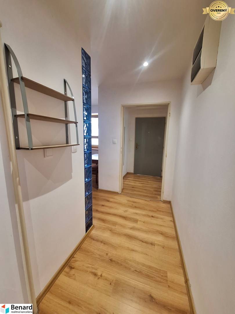 Ponúkame na prenájom zariadený a rekonštruovaný 2 izbový byt v širšom centre mesta - ul Majakovského v Prešove. Bonusom je samostatný vlastný bezbariérový vstup do bytu so vstupnou chodbičkou. Byt je voľný, hneď k dispozícii, max 2 osoby. Uvedená cena je vrátane energií (internet podľa dohody). Pri dlhodobom nájme je dohoda na cene možná. Byt je vhodný aj na podnikateľské účely / pre firmu, nakoľko byt disponuje samostatným vchodom priamo z ulice. Pozostáva z chodby, obývačky, veľkej kuchyne, spálne a spoločnej kúpeľne a WC. ZÁKLADNÉ ÚDAJE O BYTE: - celková výmera 55 m2 (vrátane murovanej pivnice cca 6 m2), prízemie/3 poschodie, orientácia sever - východ - juh - tehlový bytový dom - kompletná rekonštrukcia okien, podláh, dverí, kúpeľne, elektroinštalácie - drevené okná v celom byte - plávajúca podlaha, keramická dlažba (kúpeľňa a chodba) - zrekonštruovaná kúpeľňa spoločná s WC - nová elektroinštalácia v celom byte - nové interiérové dvere a zárubne (2x), v kúpeľni posuvné dvere - protipožiarne vchodové dvere - znížený strop - murovaná pivnica (6 m2) - nové stupačky - poloha mimo hlavnej cesty V byte ostáva kuchynská linka, sporák, digestor, chladnička s mrazničkou, jedálenský stôl, stoličky, manželská posteľ (bez matracov), vstavané skrine, rohová sedačka, stolík, podľa dohody aj práčka. Bytový dom - tehlová konštrukcia, zateplený - samostatný vstup do bytu priamo z ulice - nové vchodové dvere, okná v spoločných priestoroch, tiež nové schránky, domový vrátnik Nachádza sa v širšom centre mesta, v blízkosti kompletná občianska vybavenosť - detské ihrisko, zastávka MHD, lekáreň, pošta, potraviny, nový futbalový štadión, do centra mesta je cca 15 minút pešo. Ak máte záujem o obhliadku prípadne potrebujete viac informácii nájdete nás v realitnom centre na Slovenskej ul. č. 8 v Prešove, prípadne na kocisova@benard.sk alebo na telefónnom čísle 0910 900 920
