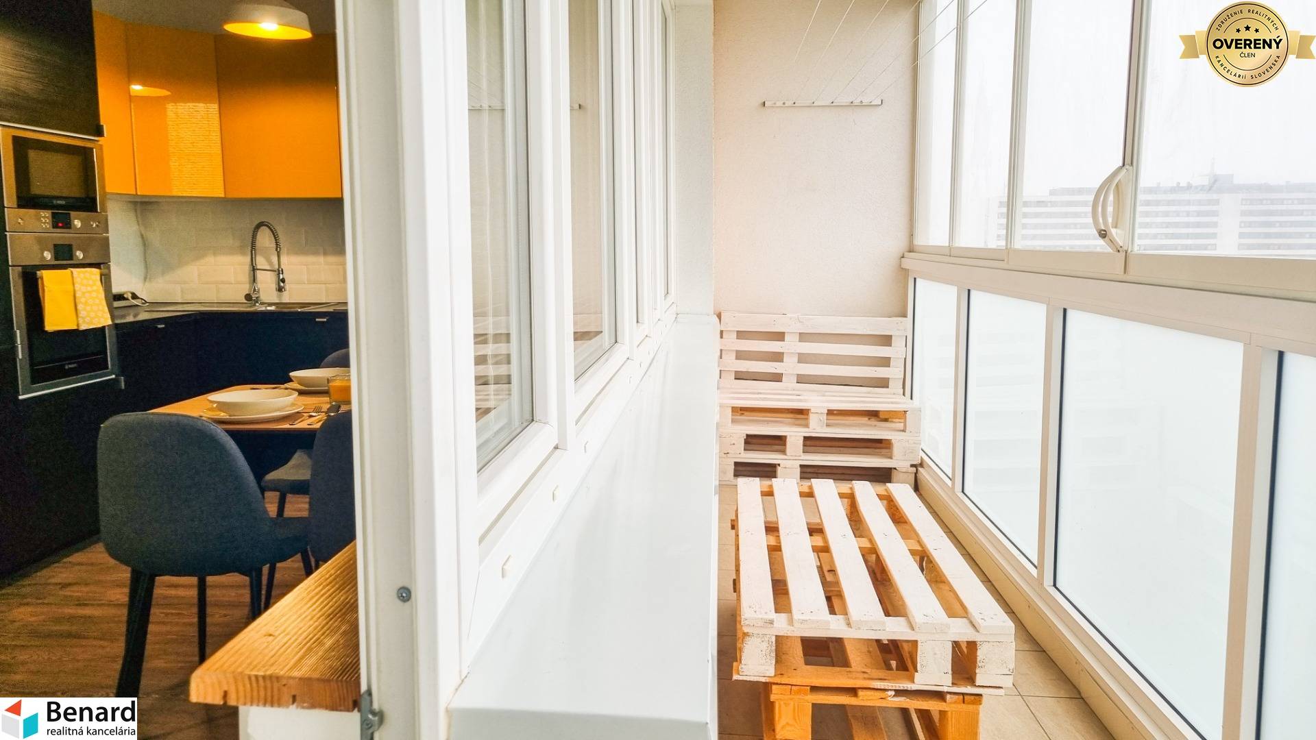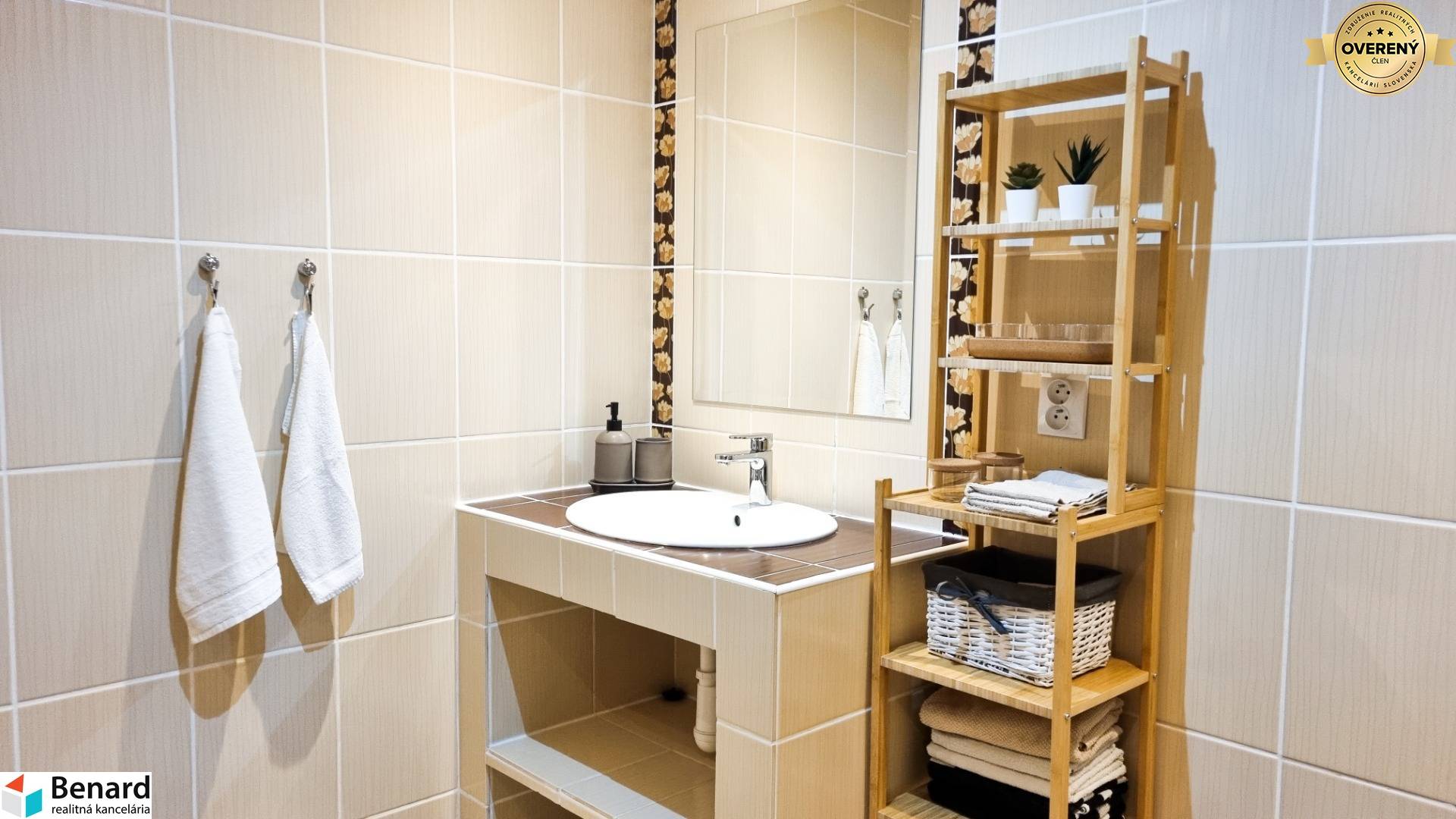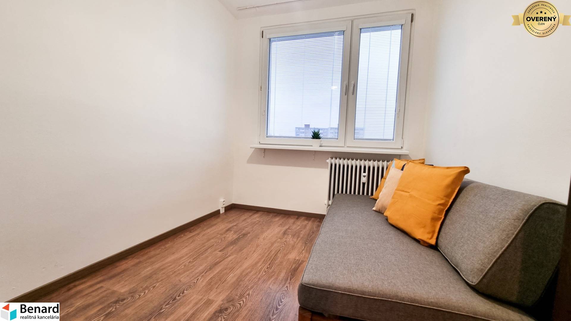 Nehnuteľnosť prešla kompletnou rekonštrukciou a preto je vhodná pre klienta, ktorý hľadá vkusné zariadený, moderný a priestranný byt s množstvom odkladacieho priestoru. Výbornou správou pre budúceho majiteľa je okrem iného 6m² loggia a aj klimatizácia v byte. K rozlohe bytu 68m² patrí navyše aj 2m² kumbál na chodbe pred bytom +2m² pivnica. Budúci majiteľ určite ocení, že denné časti bytu (obývačka a kuchyňa) sú prepojené a poskytujú tak dostatok priestoru na trávenie voľného času. Veľkou výhodou je, že spálňa má samostatný šatník a v kúpeľni sa nachádzajú dve umývadlá. Byt sa predáva kompletné zariadený, stačí sa len nasťahovať.