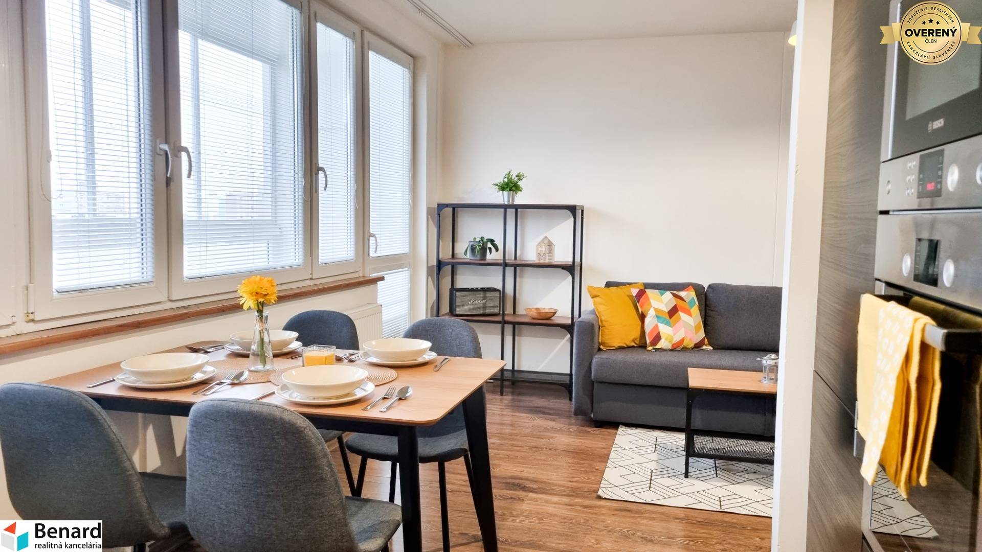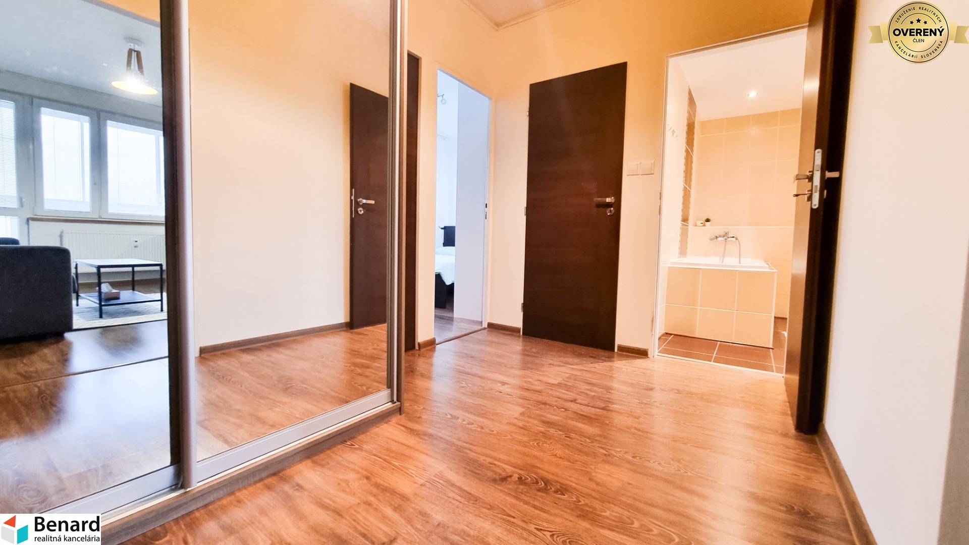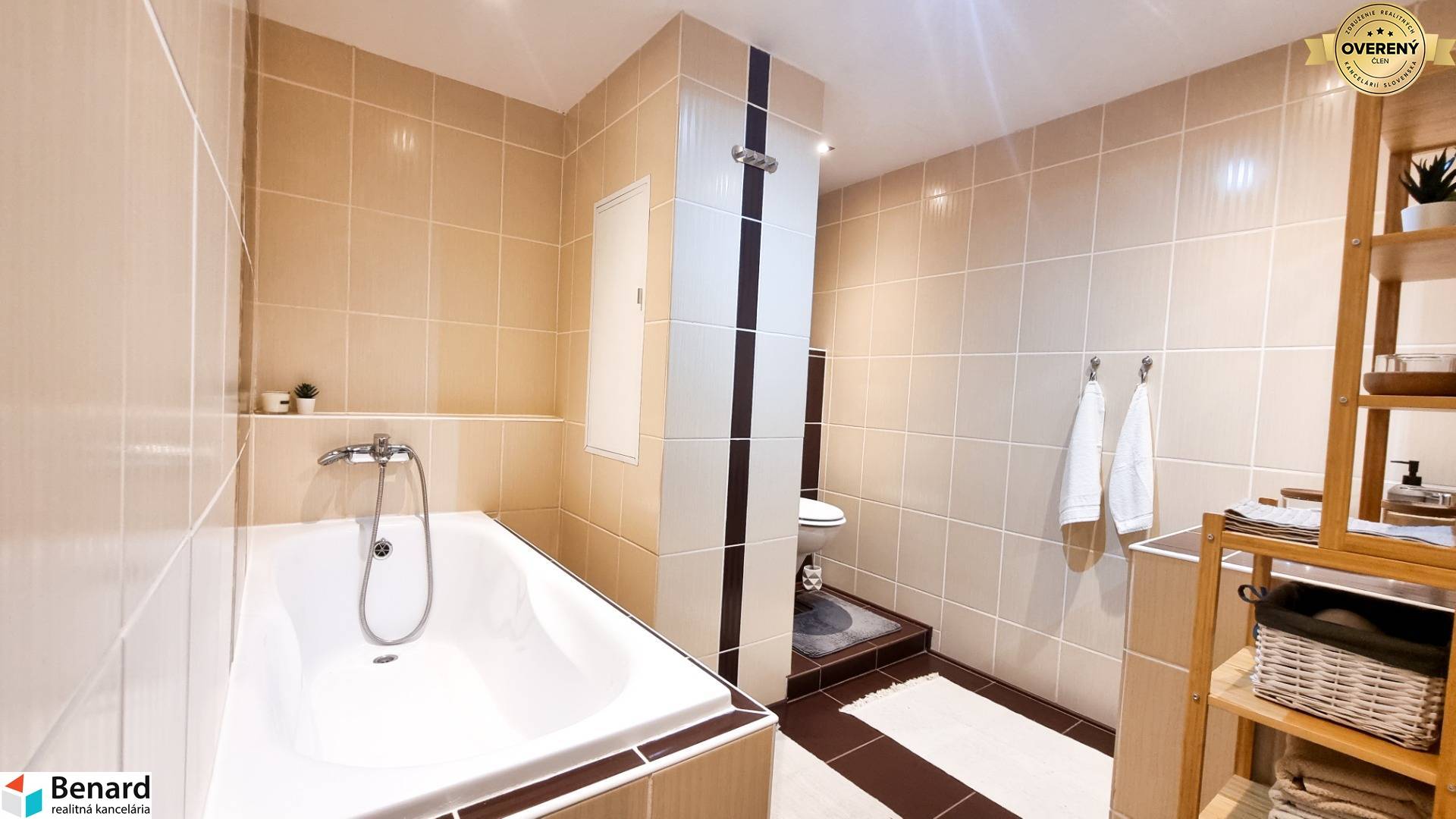 Nehnuteľnosť prešla kompletnou rekonštrukciou a preto je vhodná pre klienta, ktorý hľadá vkusné zariadený, moderný a priestranný byt s množstvom odkladacieho priestoru. Výbornou správou pre budúceho majiteľa je okrem iného 6m² loggia a aj klimatizácia v byte. K rozlohe bytu 68m² patrí navyše aj 2m² kumbál na chodbe pred bytom +2m² pivnica. Budúci majiteľ určite ocení, že denné časti bytu (obývačka a kuchyňa) sú prepojené a poskytujú tak dostatok priestoru na trávenie voľného času. Veľkou výhodou je, že spálňa má samostatný šatník a v kúpeľni sa nachádzajú dve umývadlá. Byt sa predáva kompletné zariadený, stačí sa len nasťahovať.