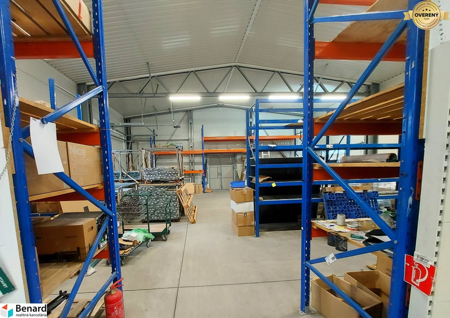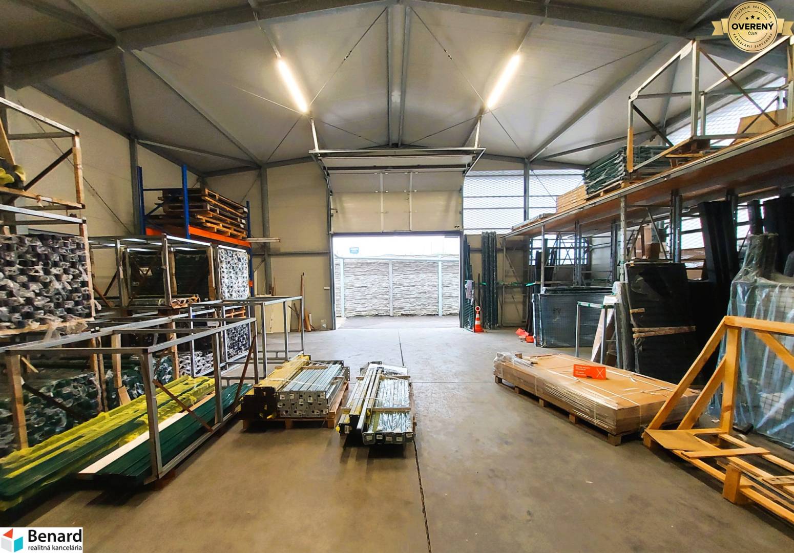 Skladová časť: Priestranná hala s čistou minimálnou výškou stropu 440 cm, vhodná pre regálové systémy.