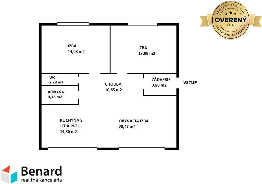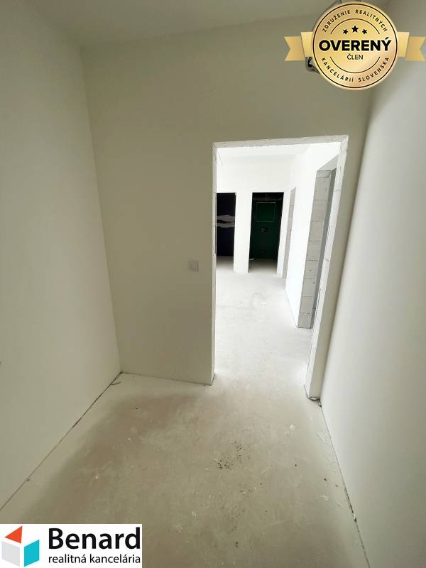 BENARD REALITY Vám ponúka na predaj veľmi peknú novostavbu 2 izbového apartmánu na ul. Zlatobanská, v Prešove, časť Solivar. Apartmán sa nachádza na prízemí a disponuje bezbariérovým vstupom. Samotná budova bola postavená v roku 2015, teraz prešla kompletnou interiérovou rekonštrukciou a taktiež zmenou dispozície. Apartmán sa predáva v stave Holobyt. Pozostáva zo zádveria, chodby, kuchyne spojenej s obývačkou, spálne, izby, kúpeľne a samostatného WC. - orientácia –východ-západ - financovanie hypotékou možné - pomôžeme Vám s jeho vybavením - úžitková plocha 85 m2,prízemie - murované jadro - nové murované deliace priečky, omietky, poter, sadrokartónové podhľady.... - centrálna kotolňa - nové plastové okná 3-sklo - nová vodoinštalácia a elektroinštalácia v byte - bezbariérový vstup - 1 parkovacie miesto v cene Apartmánový dom je situovaný v uzavretom areáli na ulici Zlatobanská, s výbornou dostupnosťou do mesta Prešov. Taktiež sa nachádza pri cyklochodníku Prešov-Sigort. Ak máte záujem o obhliadku prípadne potrebujete viac informácii nájdete nás v realitnom centre na Slovenskej ul. č. 8 v Prešove, prípadne na zakutansky@benard.sk alebo na telefónnom čísle 0908 077 713. ZADARMO K TEJTO NEHNUTEĽNOSTI DOSTANETE: inzerovanie nehnuteľnosti na najsledovanejších realitných portáloch a v miestnych novinách; preverenie právneho stavu a tiarch danej nehnuteľnosti; vysvetlenie problémov záložných tiarch, vecných bremien a pod.; právny servis zabezpečený právnikom s dlhoročnými skúsenosťami; kópiu LV prípadne katastrálnej mapy s kolkom na právne účely; poplatky za overenie podpisov na zmluvách u notára; správny poplatok za vklad vlastníckeho práva do katastra vo výške 100,-€ realitné, daňové a právne poradenstvo; zabezpečenie znalca na vypracovania znaleckého posudku; vypracovanie ponúk na zabezpečenie úveru u nášho hypotekárneho odborníka, ktorý spolupracuje s viacerými bankami;