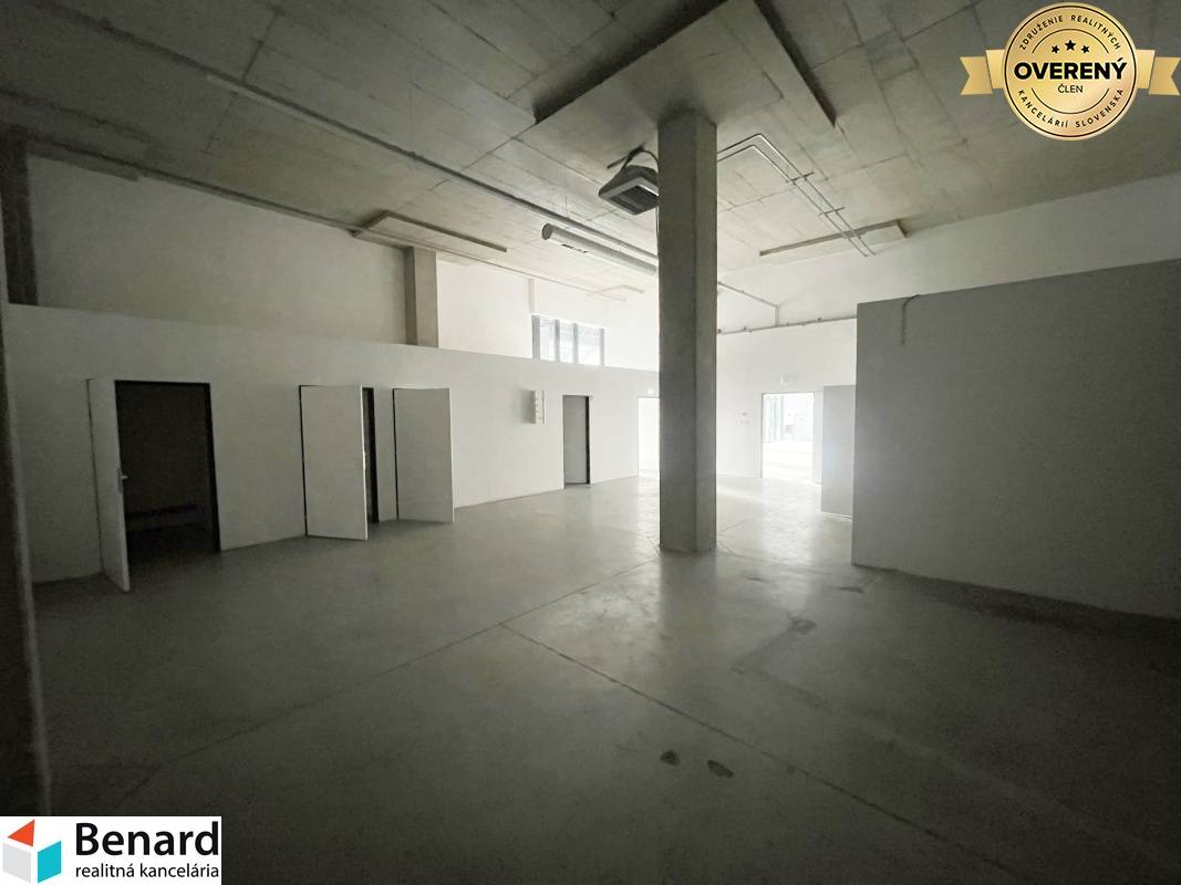 Priestor pozostáva z hlavnej miestnosti cca 200m2, sklad cca 100m2, hygienická miestnosť s toaletou cca 17m2.